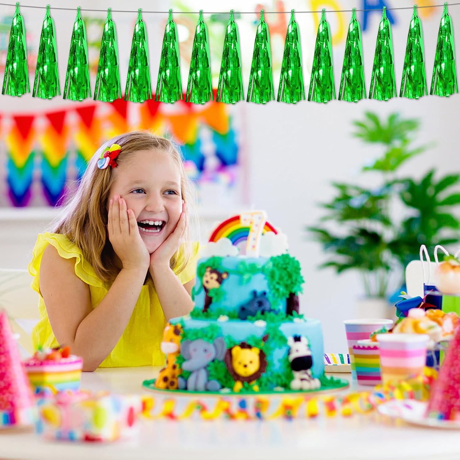 - 【Green Party Supplies Set】: The total length of the green birthday tassels banner is 26.2 feet, divided into 4 strips, each 6.5 feet long. Each banner contains 15 tassels, and each tassel measures 14 inches, for birthday decorations many occasions, and so on