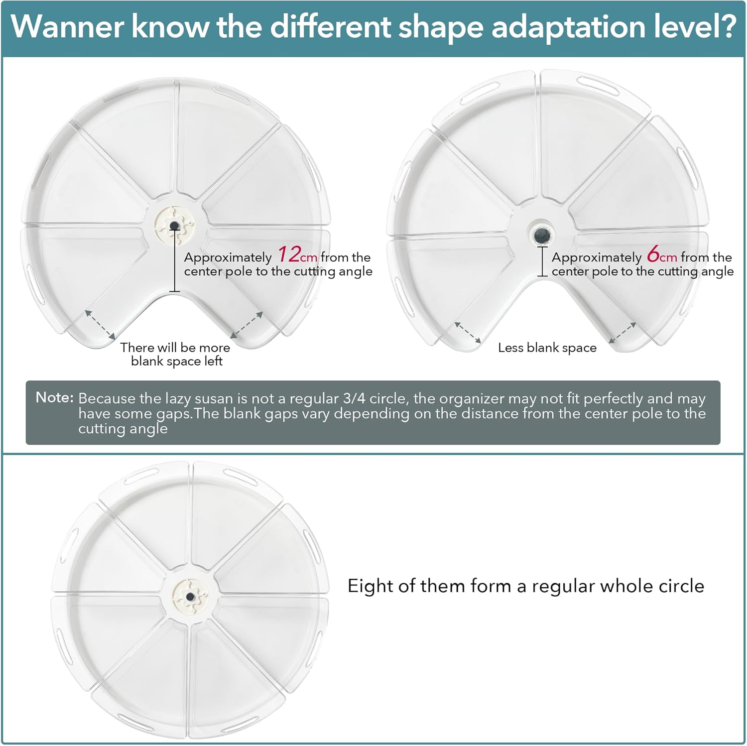 - SUITABLE SIZE: The 1/8 wedge-shaped condiment container can fit different size of food while neatly organized them in places. It comes in a set of 8 pieces and is most suitable for 32” diameter corner cabinet