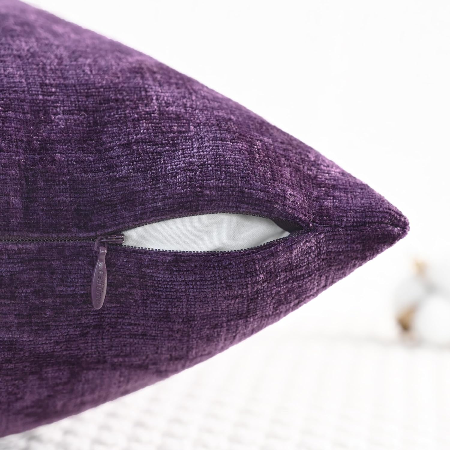 CaliTime Throw Pillow Covers Decorative 18 X 18 Inches Pack of 4 Cozy Chenille Cushion Cases for Couch Sofa Bed Living Room Home Plum Purple