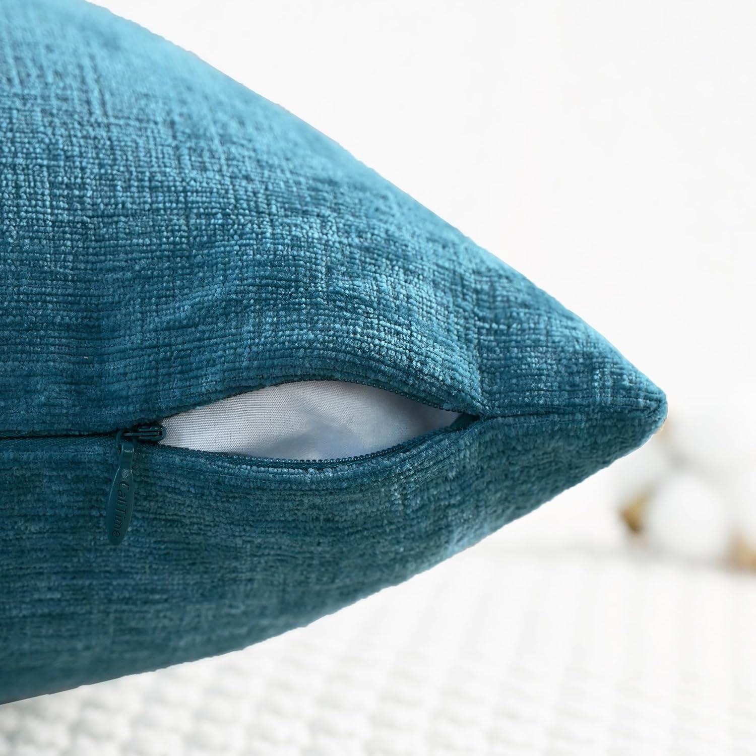 CaliTime Throw Pillow Covers Decorative 18 X 18 Inches Pack of 4 Cozy Chenille Cushion Cases for Couch Sofa Bed Living Room Home Ocean Blue