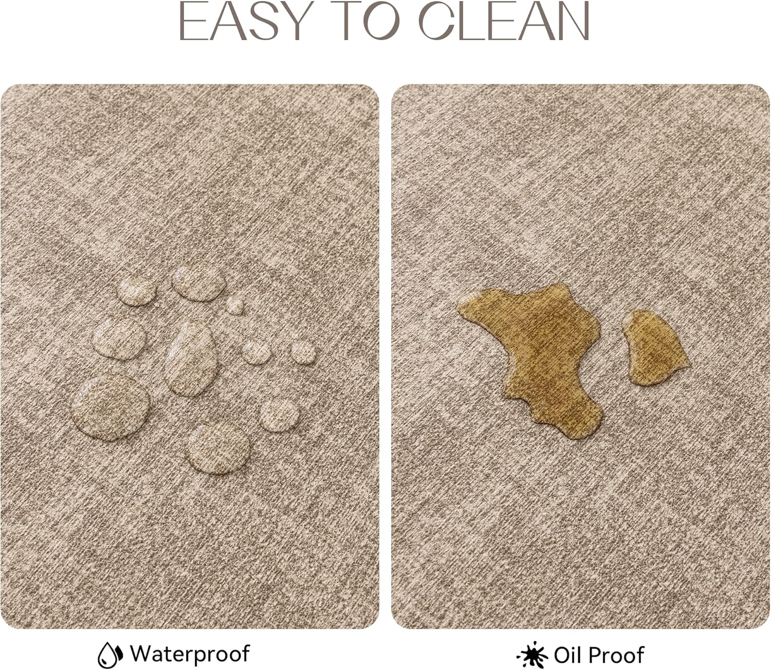 Romanstile Vinyl Placemats Set of 4-12 X 18 Inch - Heat Resistant Place Mats 100% Waterproof Oilproof Wipeable Reversible Faux Leather Table Mats for Kitchen/Dining/Party/Outdoor, Khaki