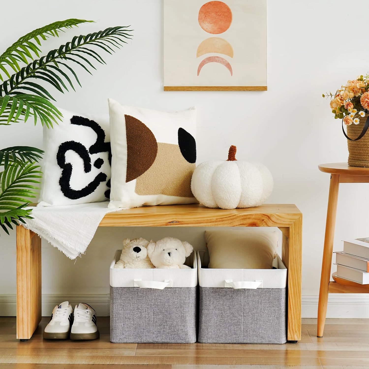 GRANNY SAYS Storage Baskets for Shelves, Closet Organizer Bins, Clothes Storage Bins with Metal Frame, Extra Large Baskets for Organizing and Storage, Collapsible, Gray&White, 2-Pack