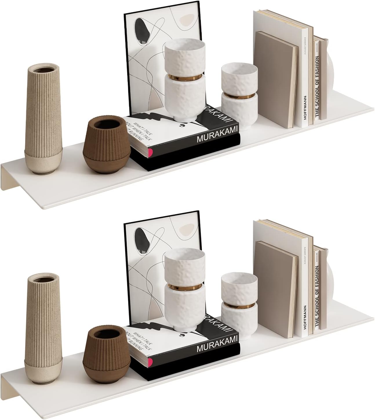 JOOM White Floating Shelves for Wall Storage, Metal Wall Shelves for Living Room, Bathroom, Kitchen, 20” Long Display Shelves for Collectibles(2 PCS)