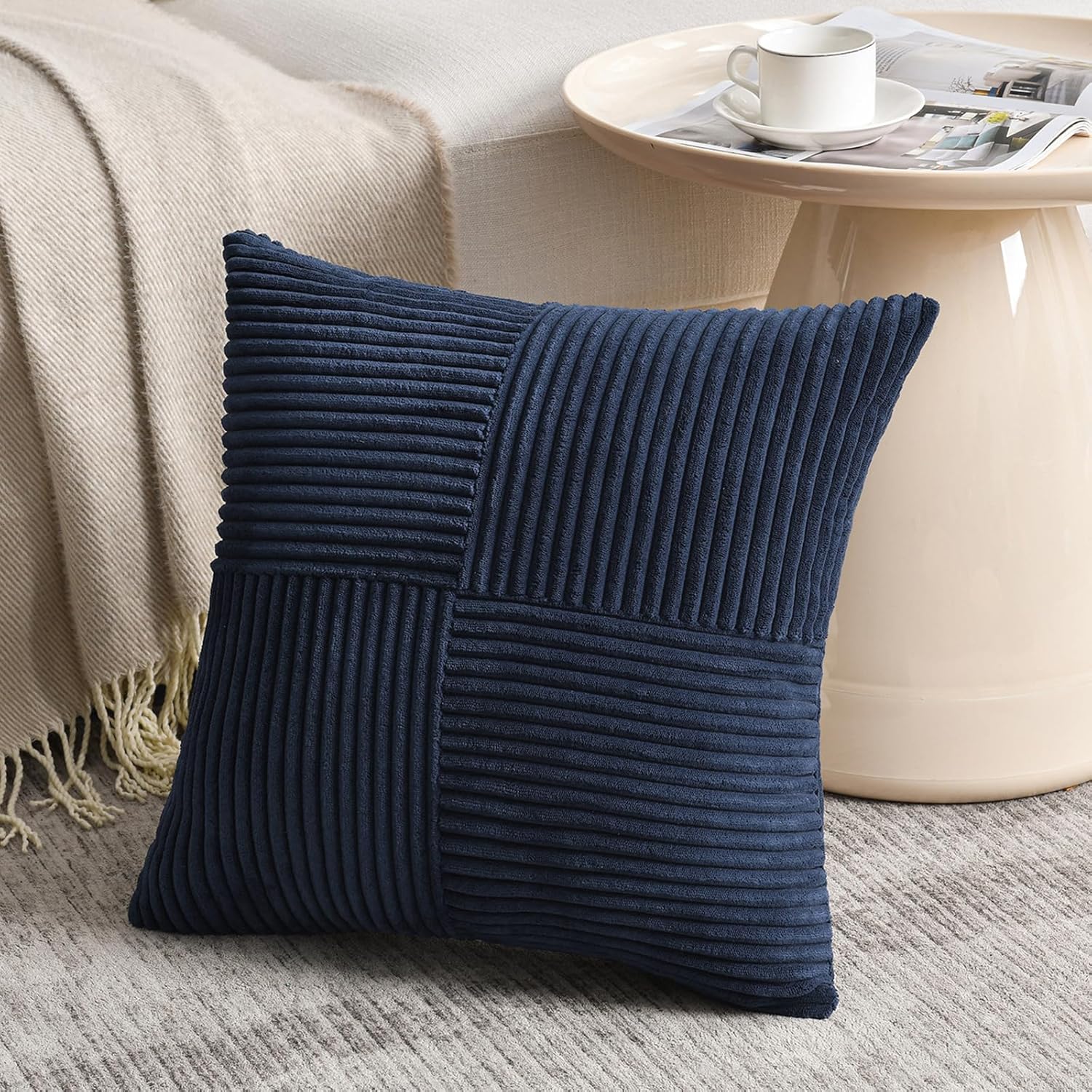 Fancy Homi 2 Packs Navy Blue Decorative Throw Pillow Covers 16x16 Inch for Living Room Couch Bed, Rustic Farmhouse Boho Home Decor, Soft Corss Patchwork Corduroy Textured Square Cushion Case 40x40 cm