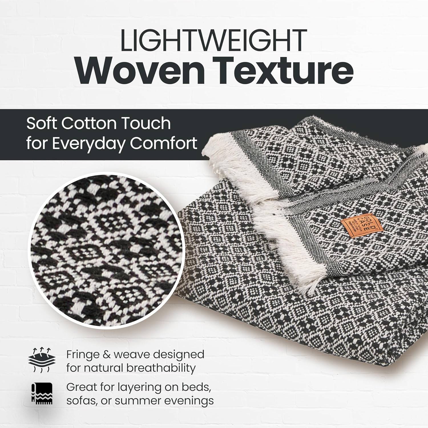 Gold Case Throw Blanket for Couch – 100% Recycled Turkish Cotton Blankets & Throws – Elegant Decorative Throw Blankets for Living Room Sofa – Woven Throws for Couch – Retro Black – 50x60