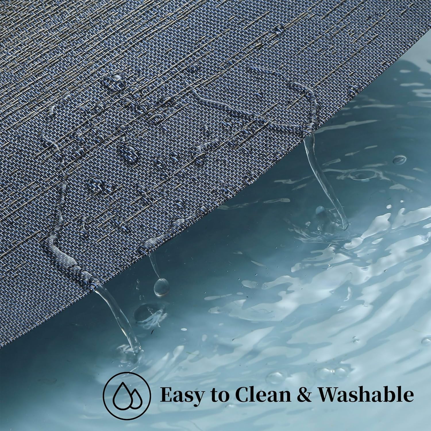 - Elegant and Practical Design: With a luxurious vinyl woven texture, precision cutting, and heat-trimmed edges, our double-sided placemats offer a sophisticated and practical solution. They provide a non-slip surface, resist fading, and are easy to clean, elevating your dining experience.