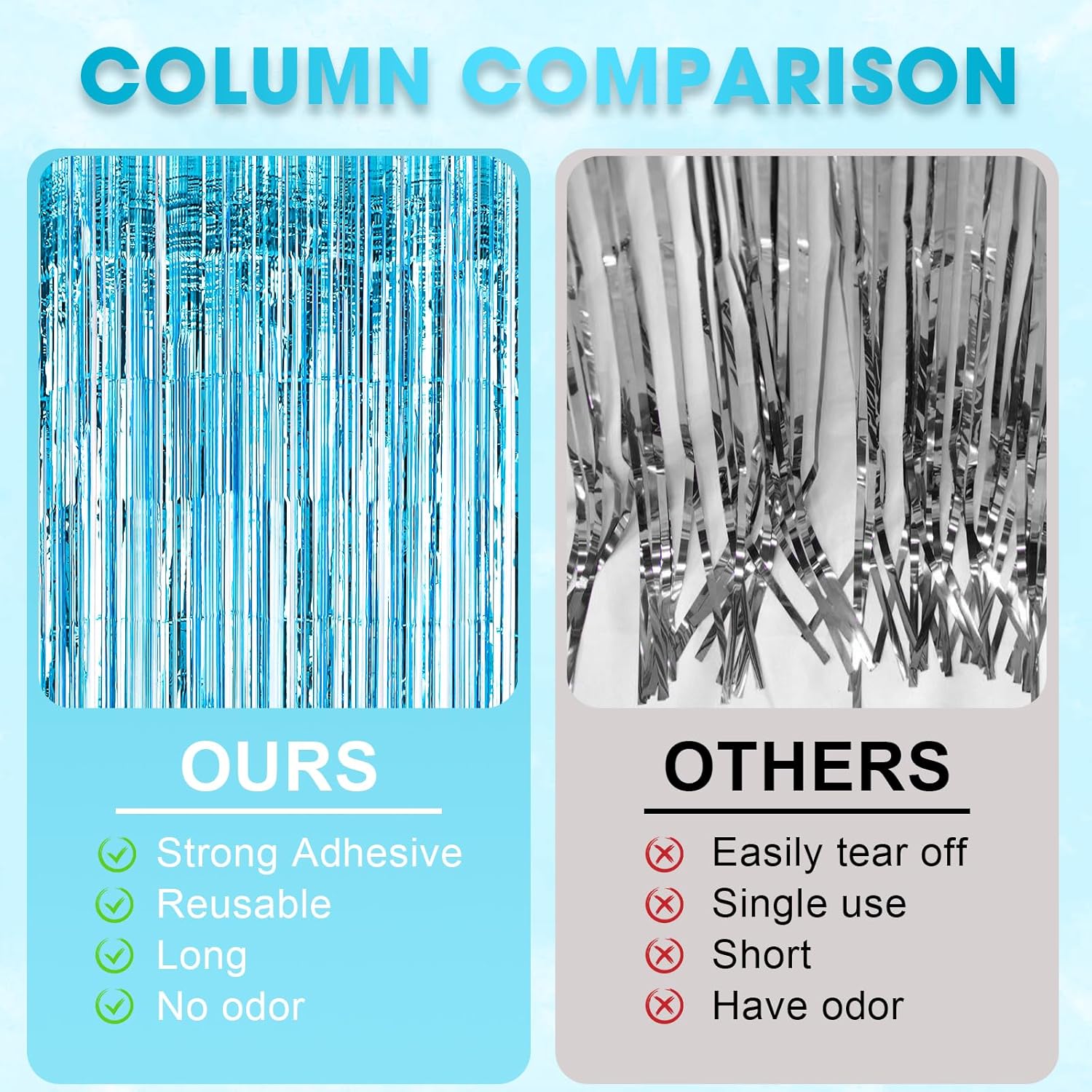 - Premium Material: This Light Blue foil curtain backdrop is made of stable tinsel, non-fading, stay shiny and reusable. Unfold it and then enjoy your glittering party