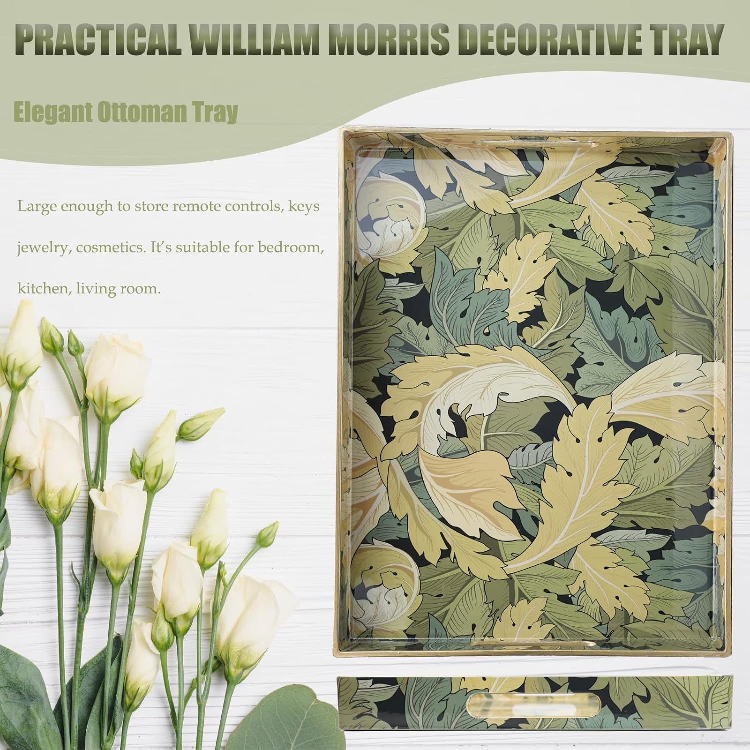 - Endless usage scenarios: This serving tray is perfect for a variety of occasions and scenarios. Use it as a breakfast tray, snack tray, tea tray, appetizer tray, bed tray, lap tray, and more. It's also great for organizing your cosmetics, jewelry, and other small items.