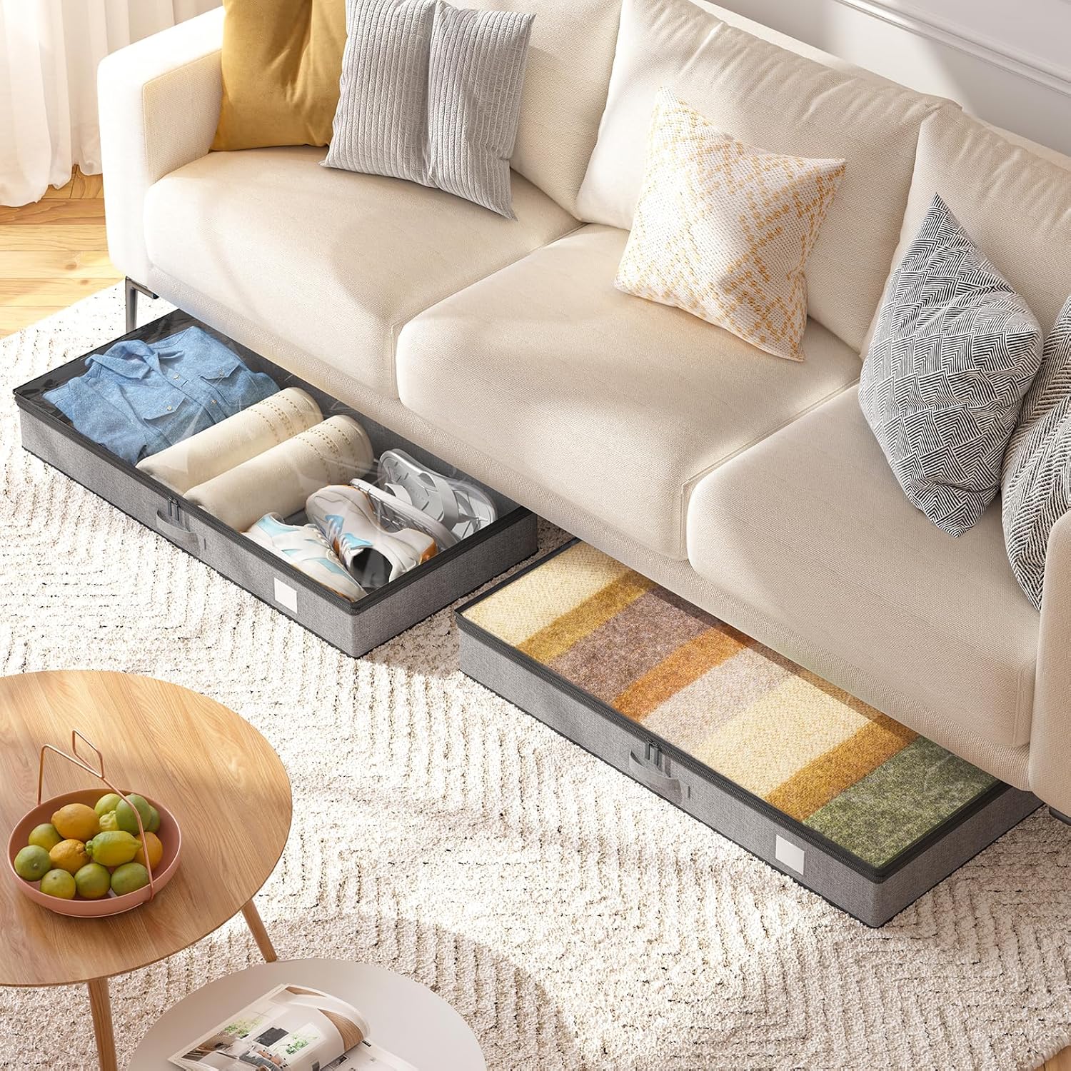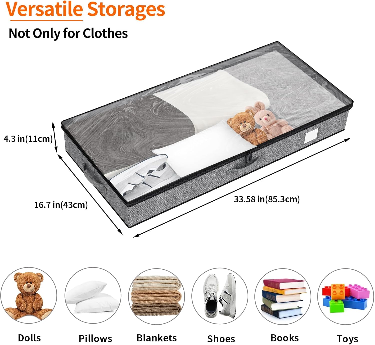 - MORE SPACE, LESS CLUTTER - Underbed storage containers are designed to help you make the most of your space. With a low profile and sturdy construction, they're perfect for storing blankets, pillows, out-of-season clothes, shoes, books, toy bricks, packaging boxes, dolls and toys.
