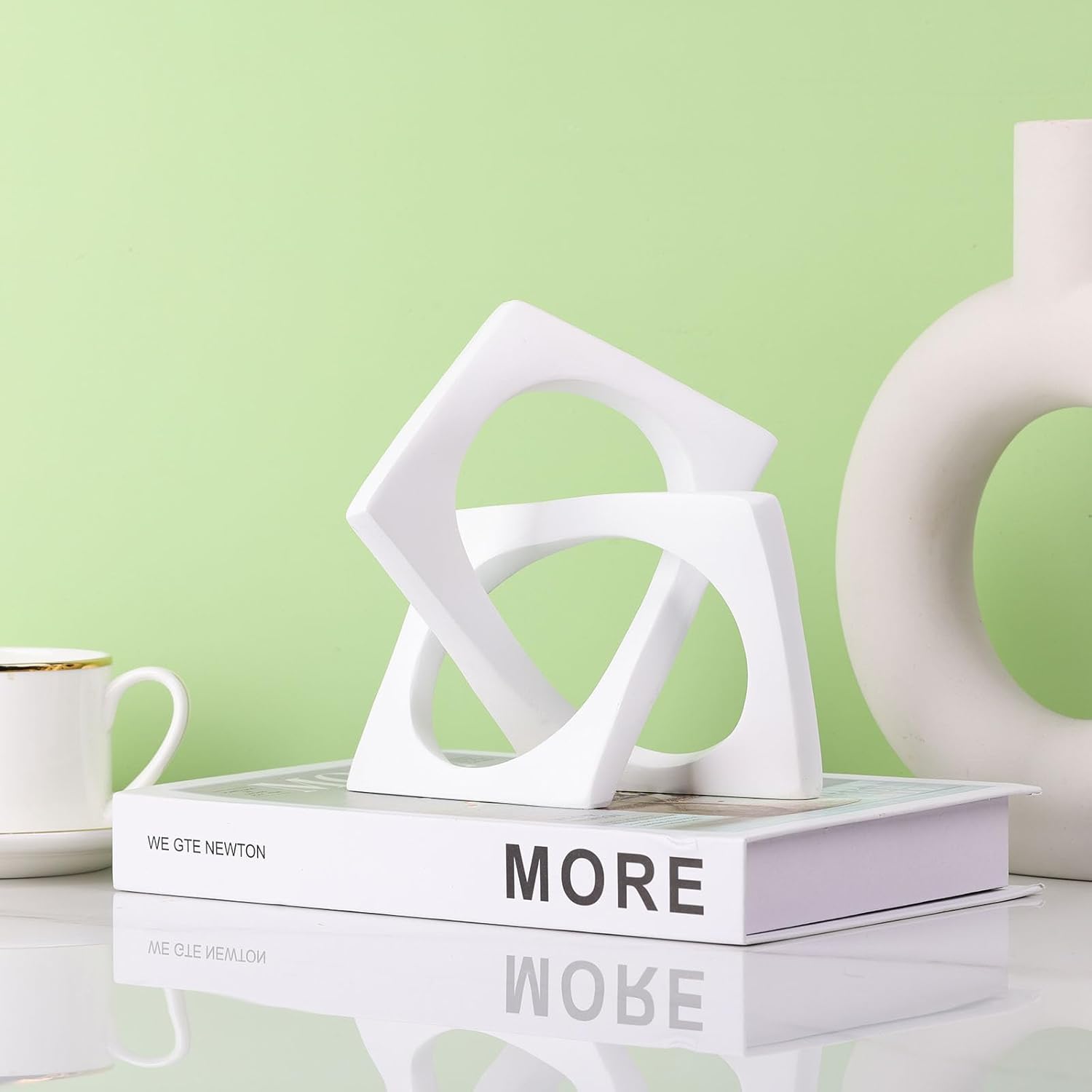 XMGZQ White Knot Statue for Coffee Table Centerpiece Decor,Modern Abstract Art Geometric Sculpture and Figurines, Home Decor Accent,Cube Knick Knacks for Shelves,Bookshelf,Entryway,Floating