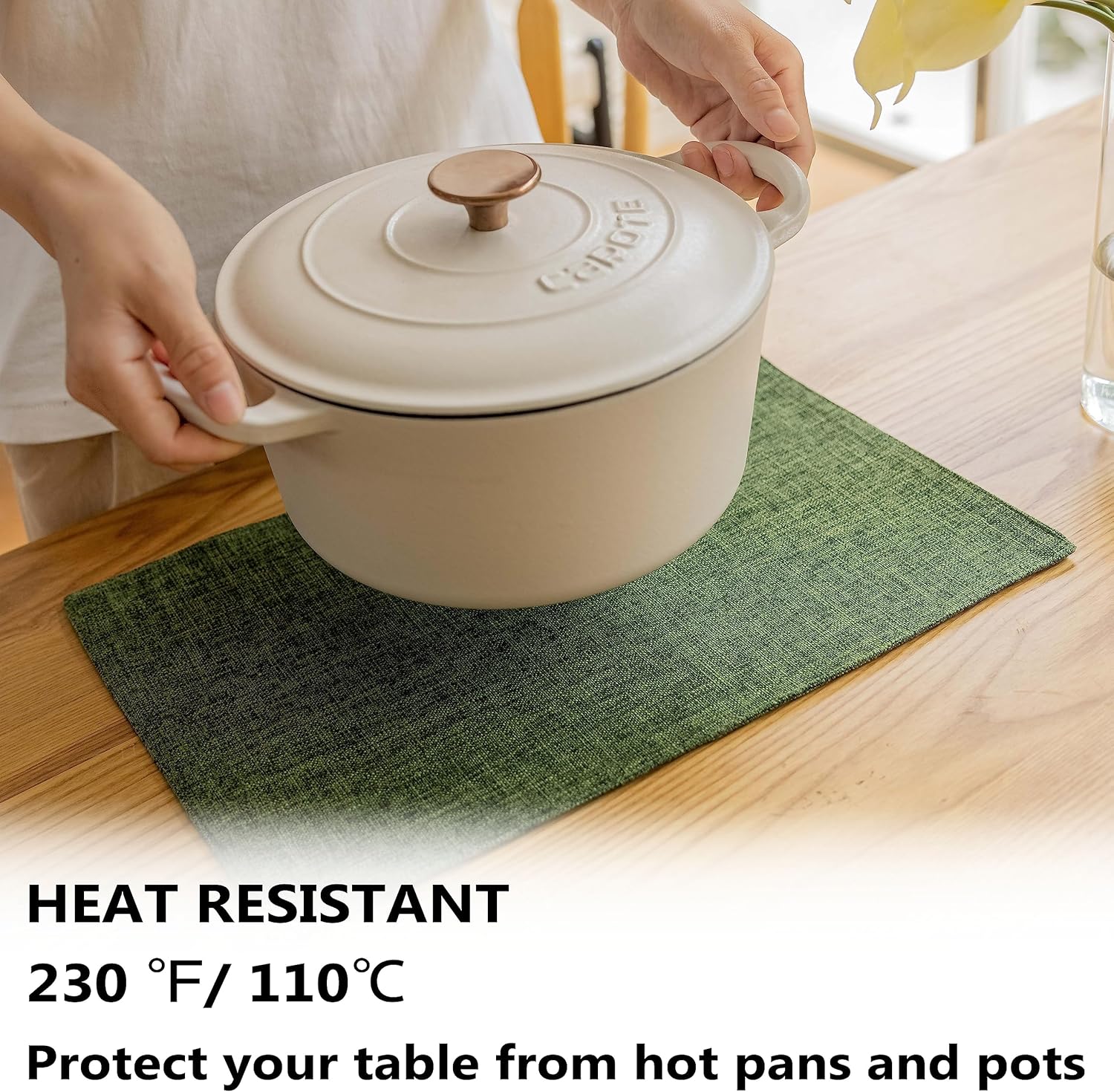 Demetex Green Placemats Set of 6 Vintage Cloth Textured Place Mats Stain Resistant for Holiday Barbecue and Dinning Table, Green