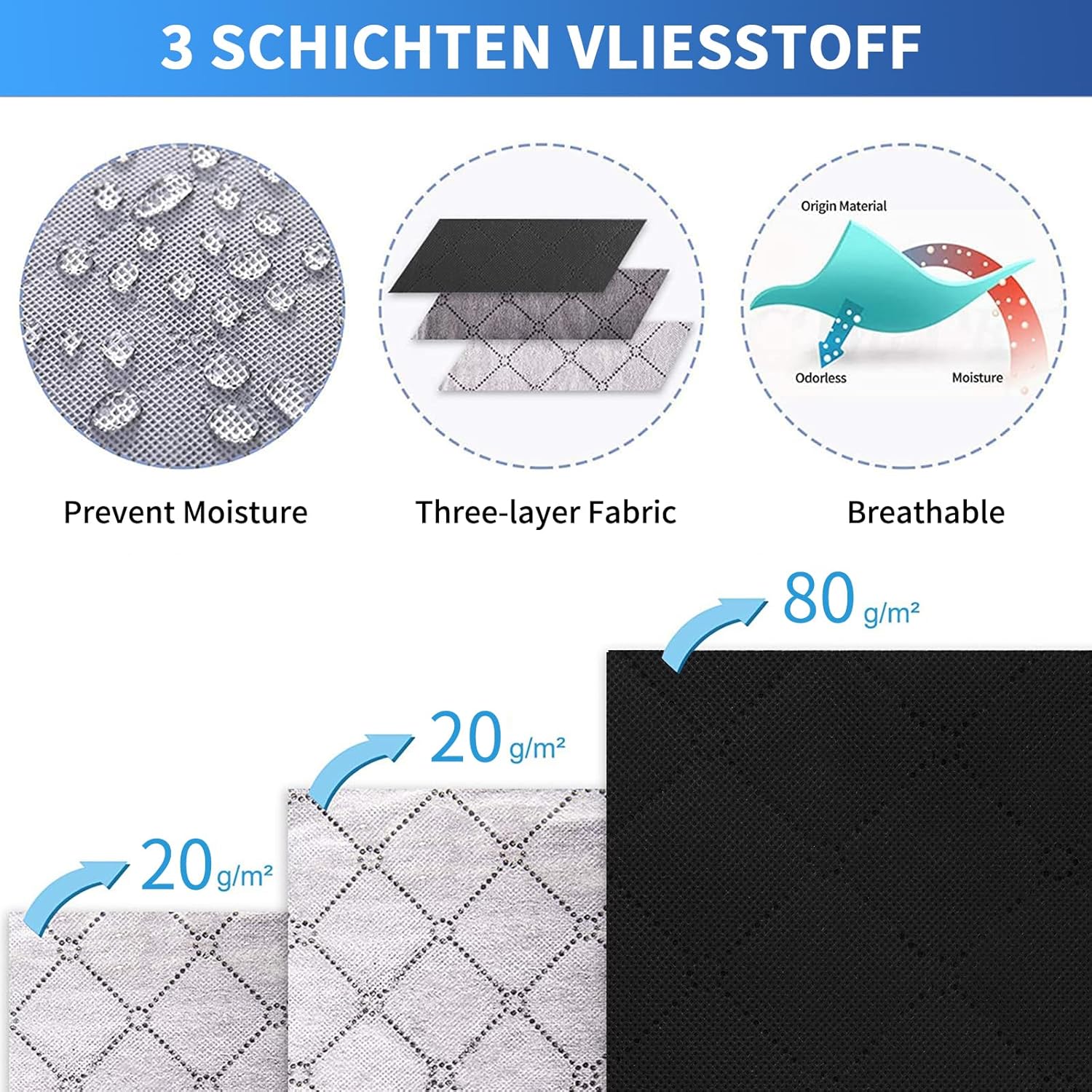 - Made of 3-layer breathable and odorless non-woven fabric to prevent moisture; Includes reinforced plastic handles for easy access