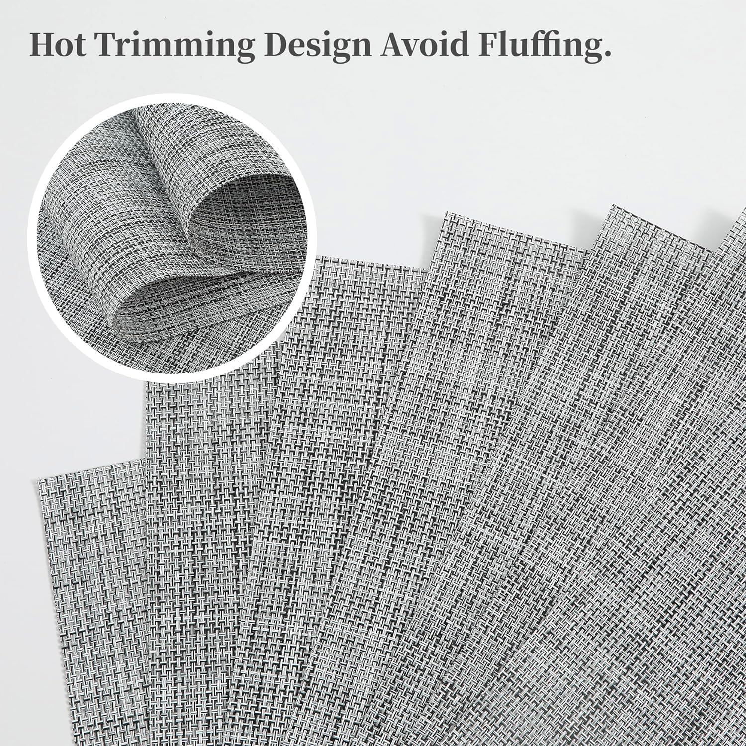 Leetaltree Linen Grey Placemats Set of 4 - Heat Resistant Non-Slip Place mats for Dining Table, Washable Durable PVC Vinyl Woven Table Mats(Linen Grey, 4)
