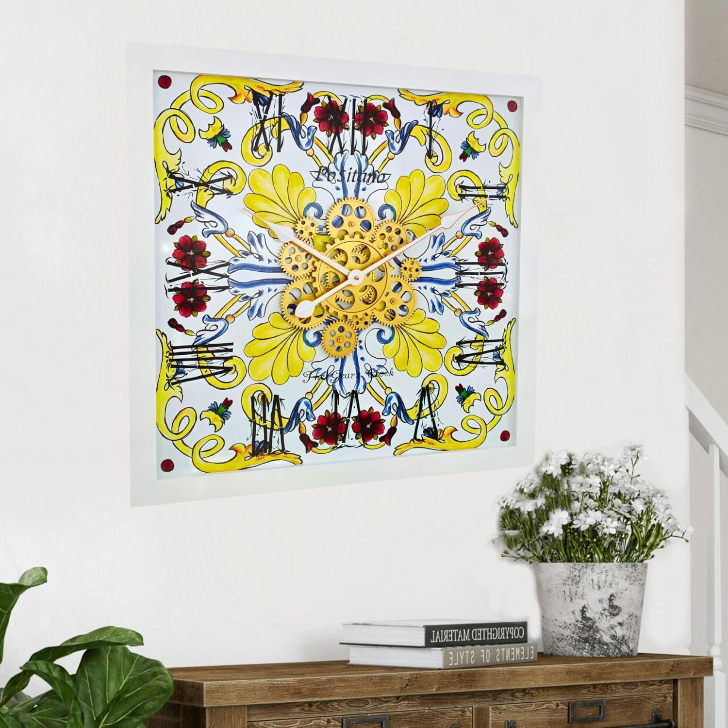 • Wall Clock Italy Collection with Real Moving Gears is an Art Timepiece inspired by the Famous Amalfi coast Tiles in Italy