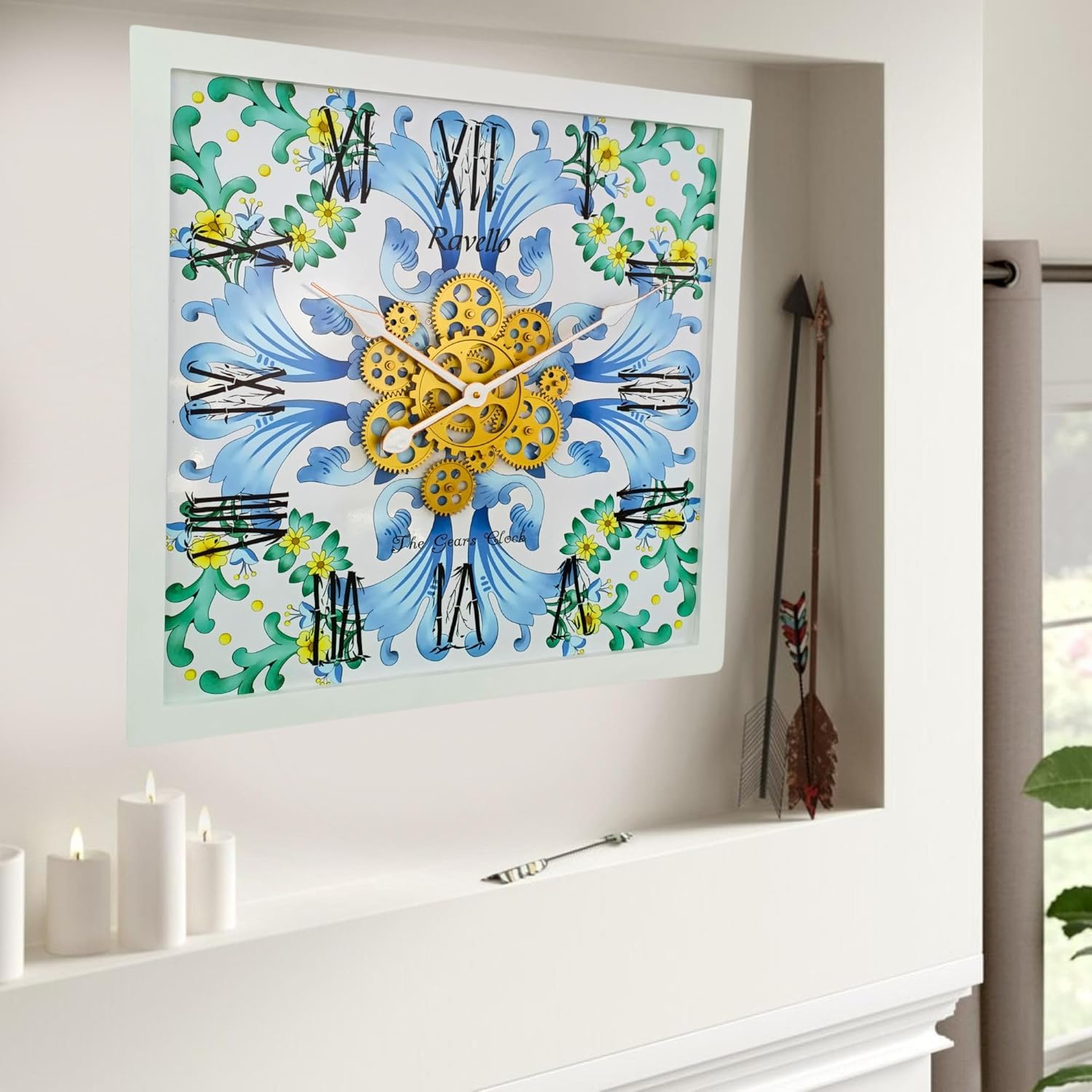 - Wall Clock Italy Collection with Real Moving Gears is an Art Timepiece inspired by the Famous Amalfi coast Tiles in Italy