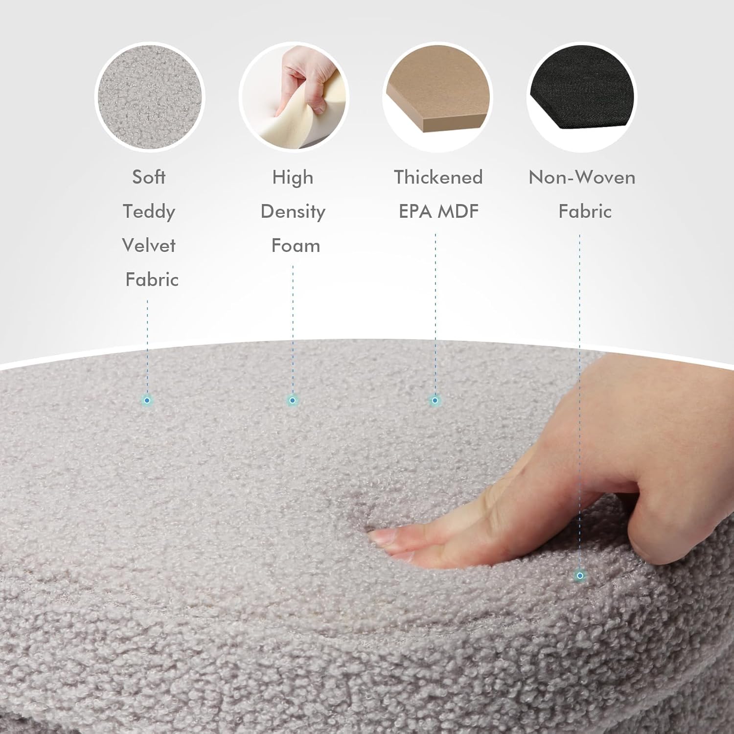 - 【Sturdy & Durable】The stool body wrapped in Top-quality Faux lamb fleece offers ultimate soft and comfort. The medium density fiberboard used in this ottoman is made from FSC certified wood. 15 inches is an ergonomically comfortable height for most people.