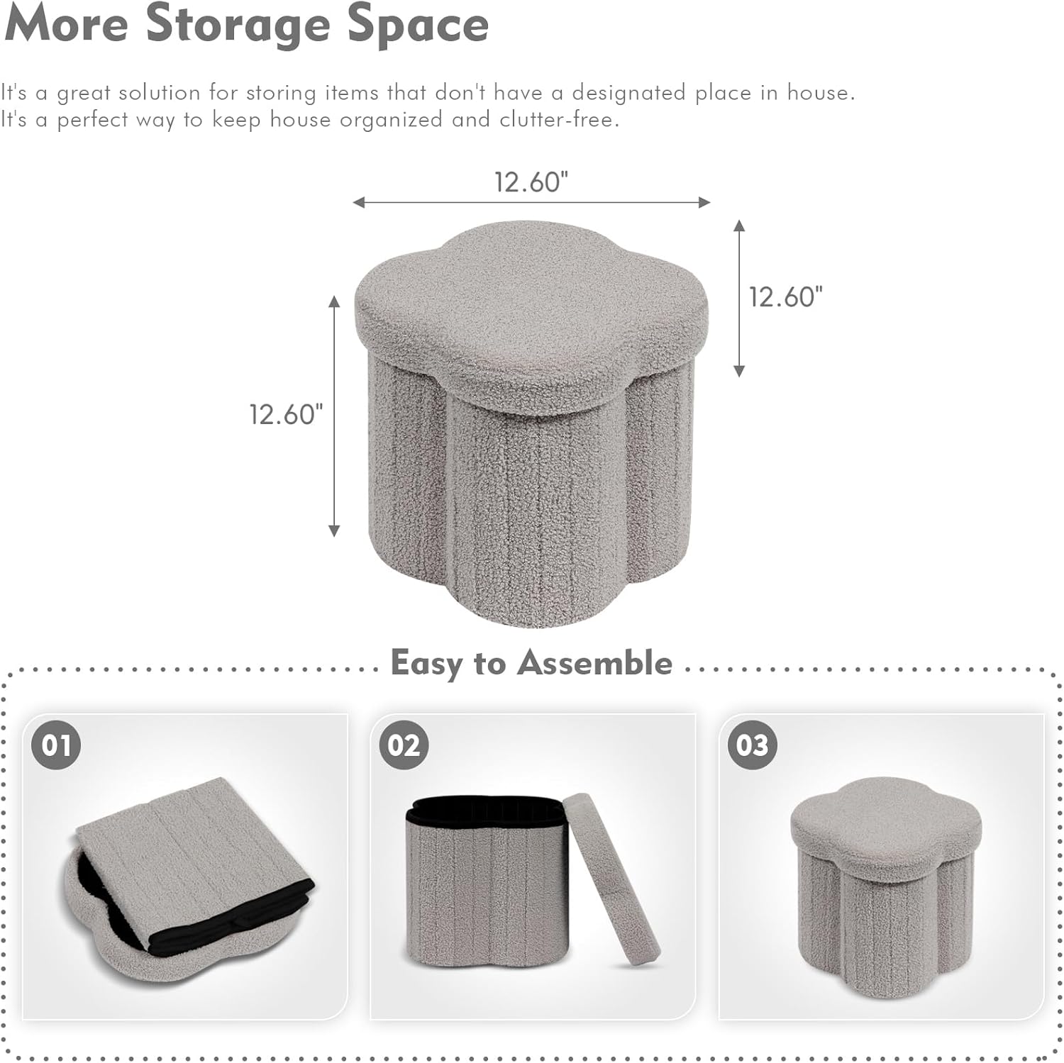 B FSOBEIIALEO Storage Ottoman Cube, Flowers Shaped Ottomans with Storage Foot Stool Footrest for Lving Room, Boucle Ottoman Seat for Dorm Room,Faux Teddy Fur, Grey 12.6"x12.6"x12.6"