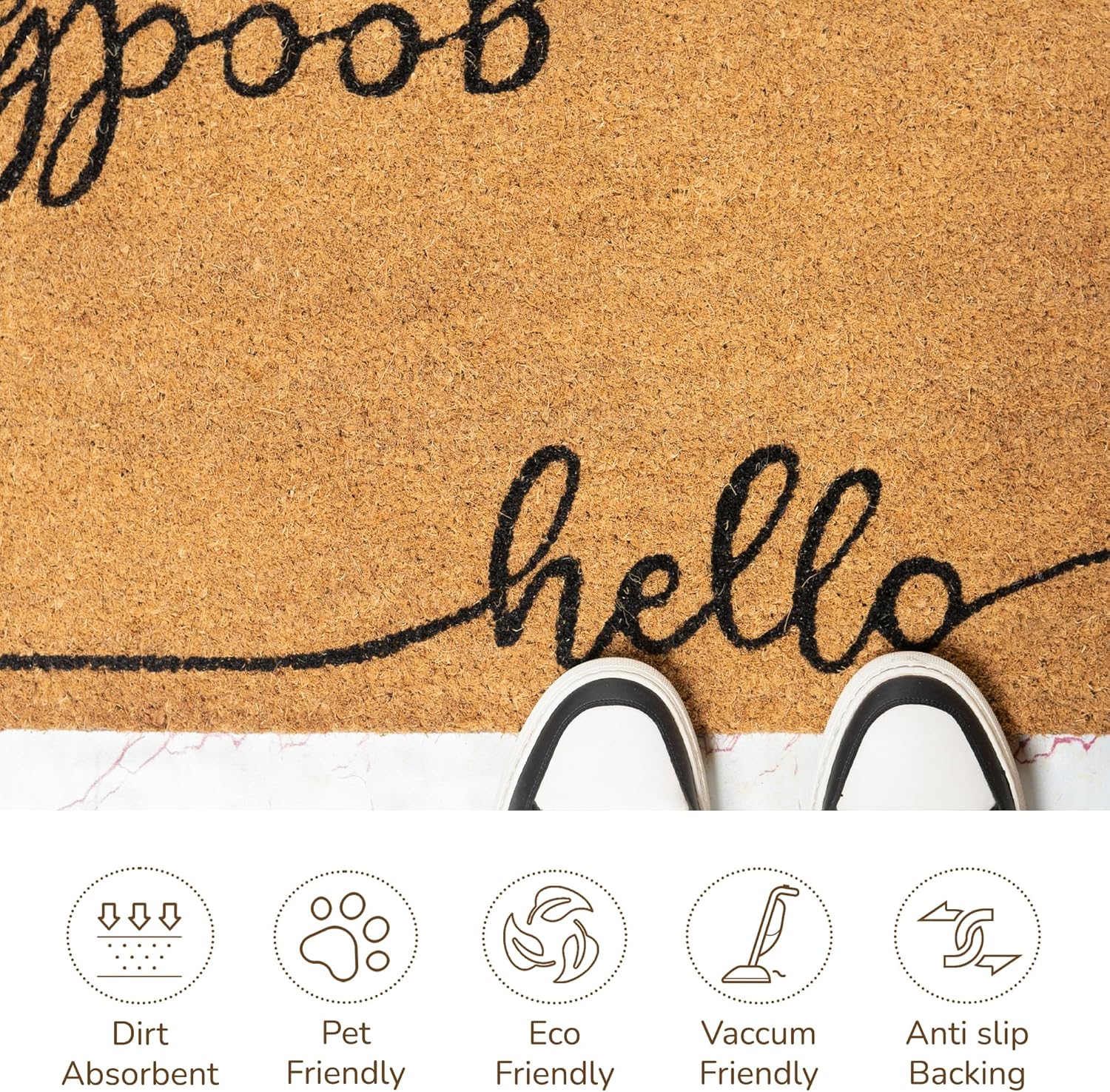 - NON-SLIP, DURABLE, & FLOOR-FRIENDLY PVC BACKING: Our coir doormats come with non-slip PVC backing, ensuring that the mats remain securely in place. Whether you use them as outdoor doormats or indoor door mats for entryway, our floor-friendly design provides stability and safeguards your floors from scratches and marks.