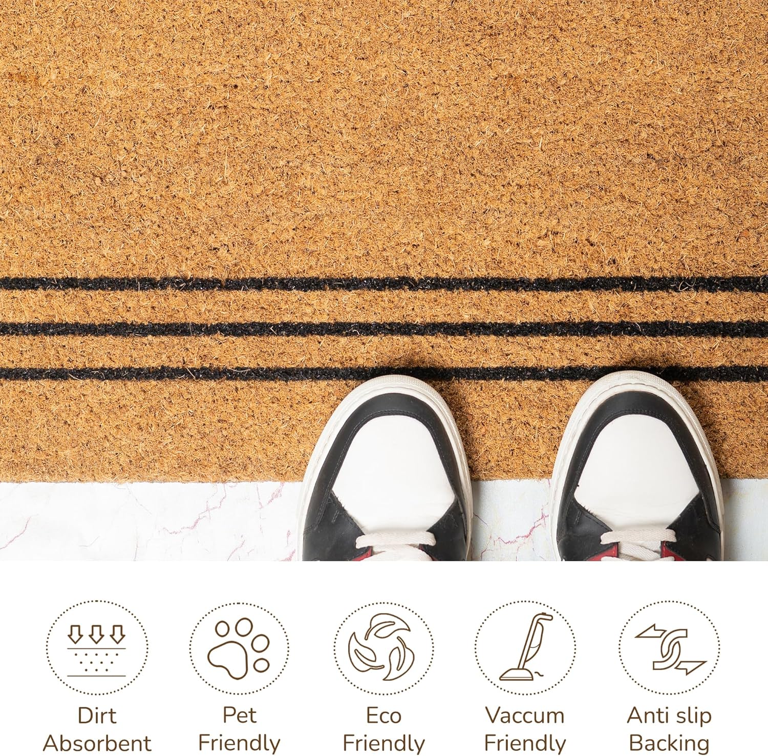 - SCRAPES-OFF DIRT TO KEEP YOUR HOME CLEAN: Our coir doormats are designed to scrape off dirt and debris from shoes, keeping your floors clean. These indoor outdoor rugs effectively trap dirt, making them ideal for entryways and high-traffic areas. With our coir doormats for outdoor entrance, you can maintain a cleaner home by preventing dirt from being tracked inside.