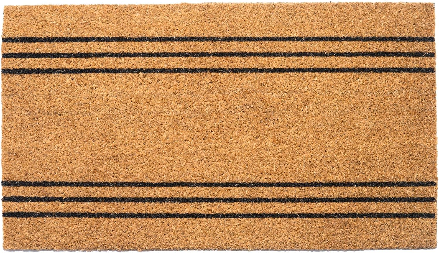 Welcome Doormats, Natural Coco Coir Mats with Non-Slip PVC Backing, Indoor Outdoor Mats for Home & Office, Floor Mats for Door Decor, Plain Entry Mat with Stripes, Beige & Black, 30"x17"