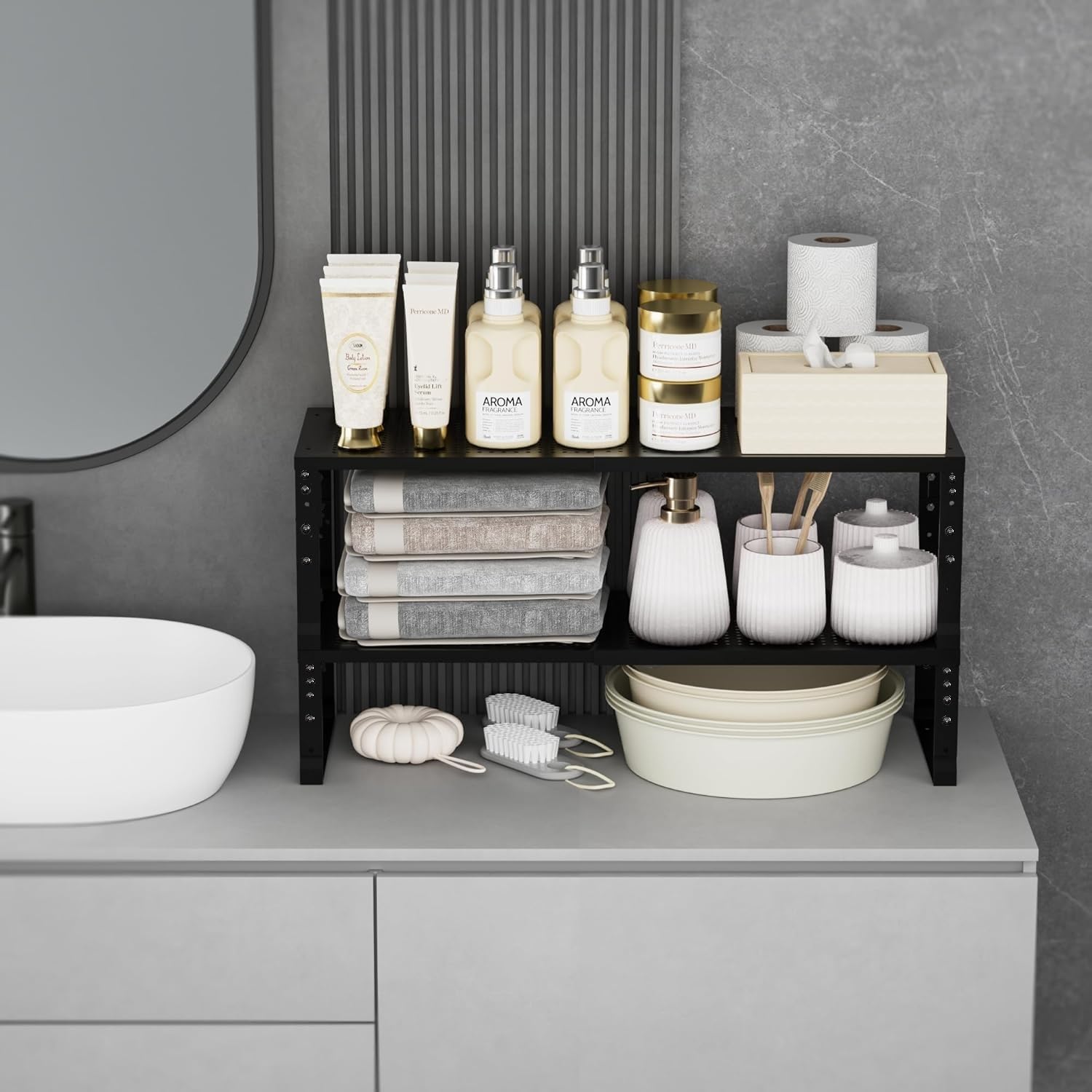- β[Multi-purpose]This Shelf can be used in various scenes of your house including cabinets,bathroom,dressing table or under a sink. Easily organizing your cabinets for the plates, bowls, snacks, books, foods,body lotion and other else.