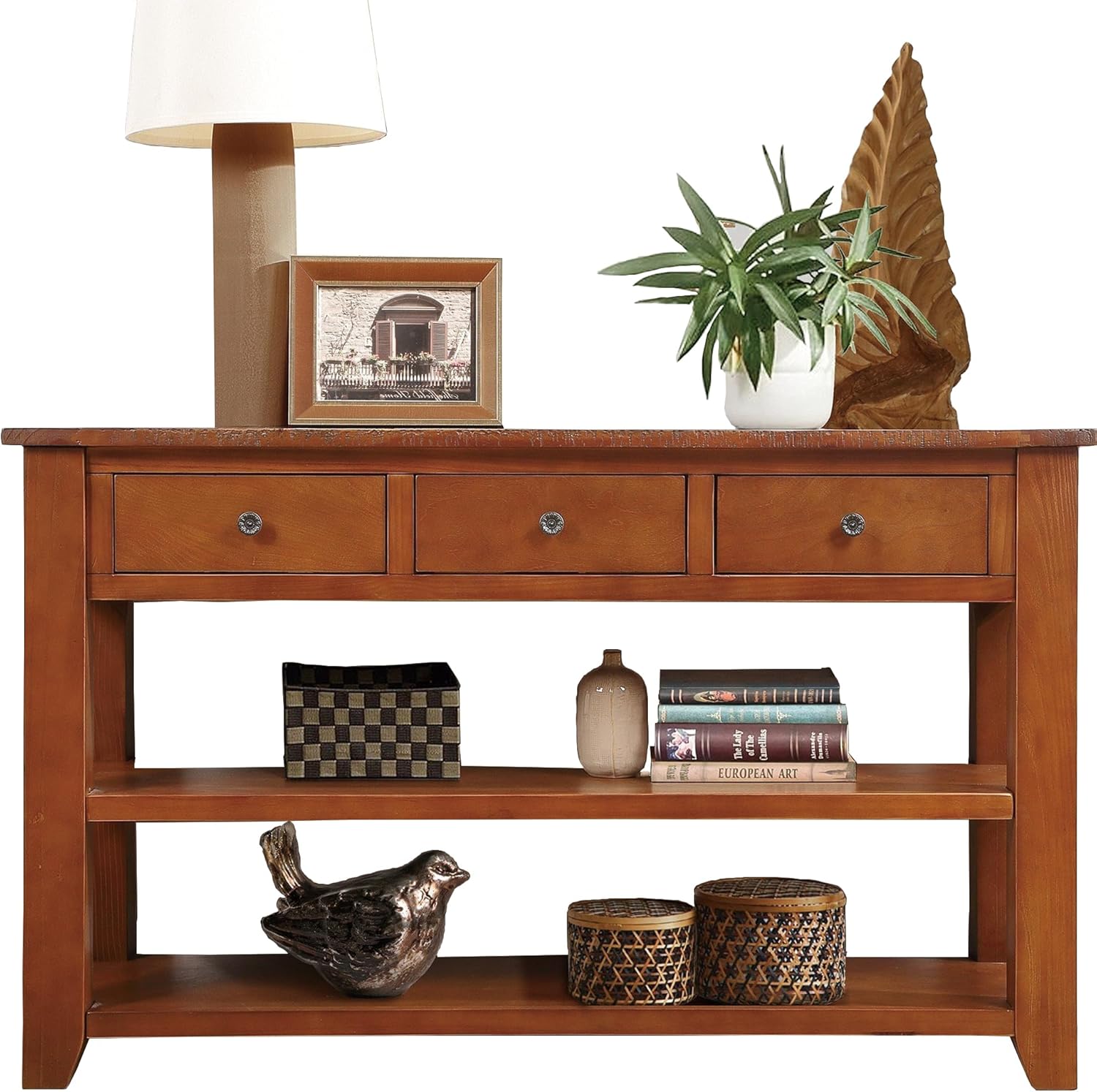 Solid Wood Console Table Entryway Table with Storage Drawers and Bottom Shelf Sofa Table for Entry Hallway Foyer Sofa Couch Table,Fully Assembled (48.8" Brown)