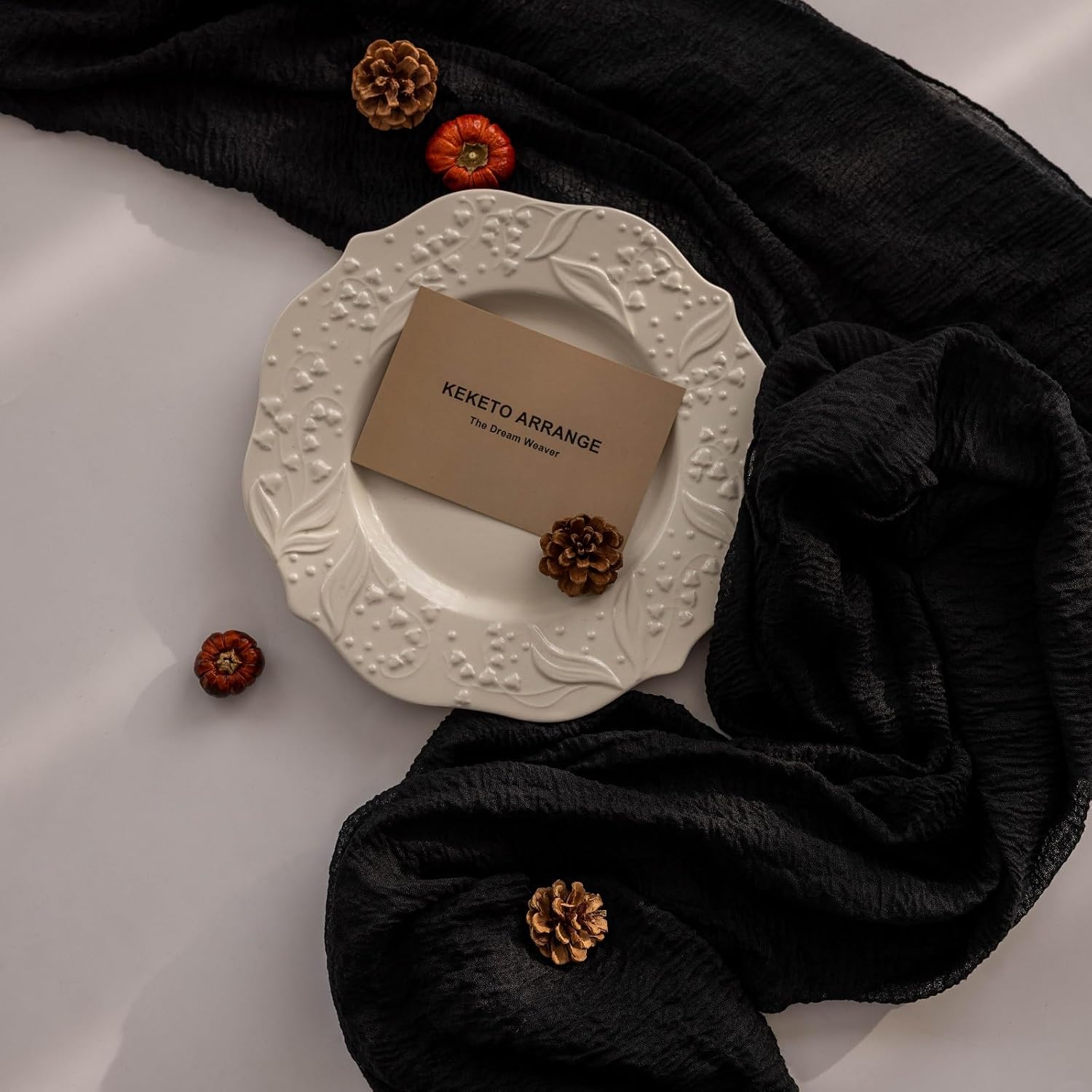 Black Table Runner Cheesecloth Gauze Rustic Premium Cotton Cheese Cloth Table Runner 120 Inch 10 FT for Wedding Bridal Baby Shower Long Sheer Boho Home Decorations