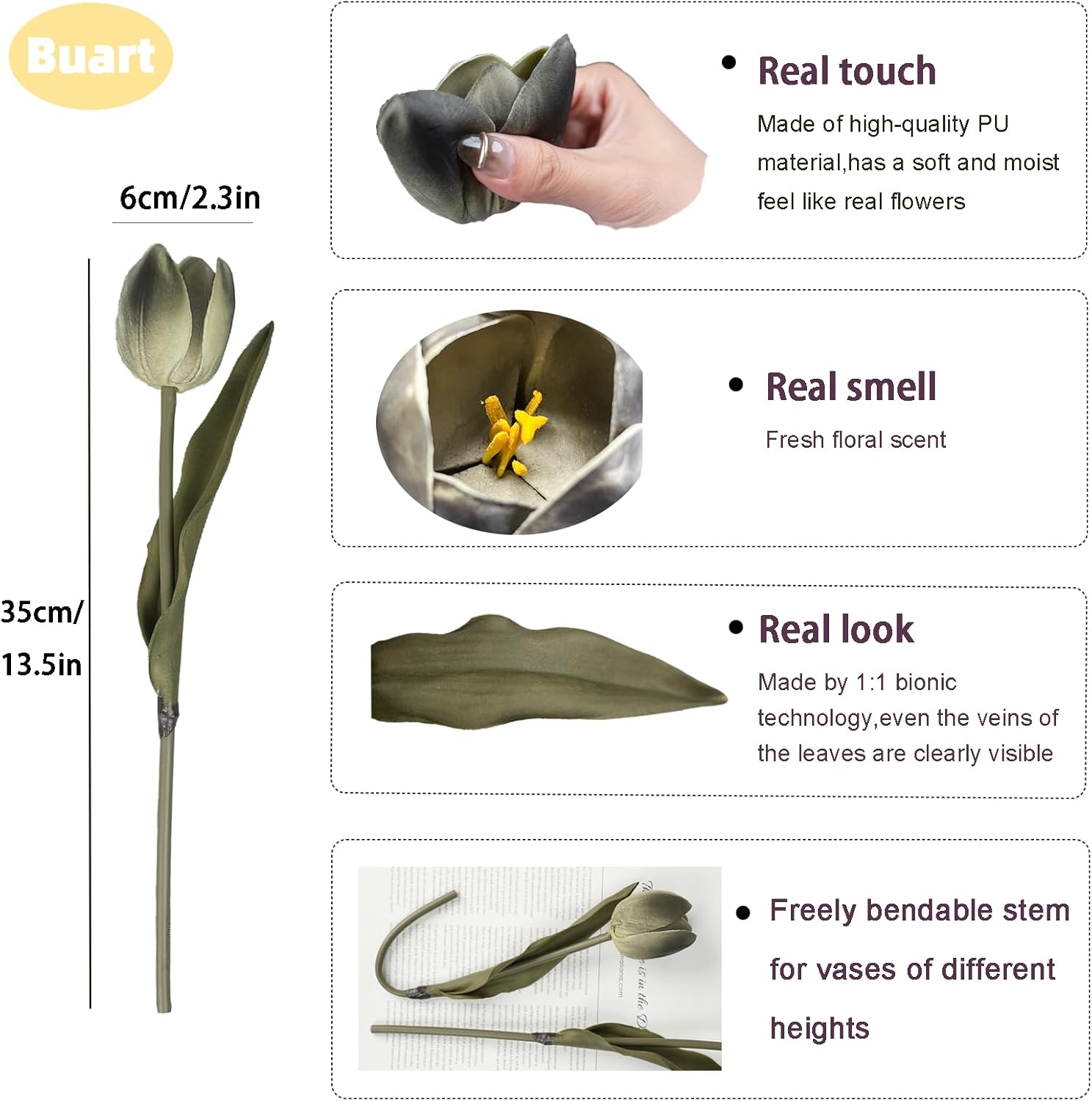 • đŸŒ·ă€Wide Applications】: These black artificial tulips are an ideal choice for home decor aesthetic,office,or commercial space decoration.You can use them on kitchen counter,dining table or anywhere else.They can also be used as decorations or centerpiece bouquets for weddings and parties,or as festival gifts for friends and family such as Death to My 20s Party,Halloween and so on.Moreover,they are great props for photography,adding visual effects to your scene.
