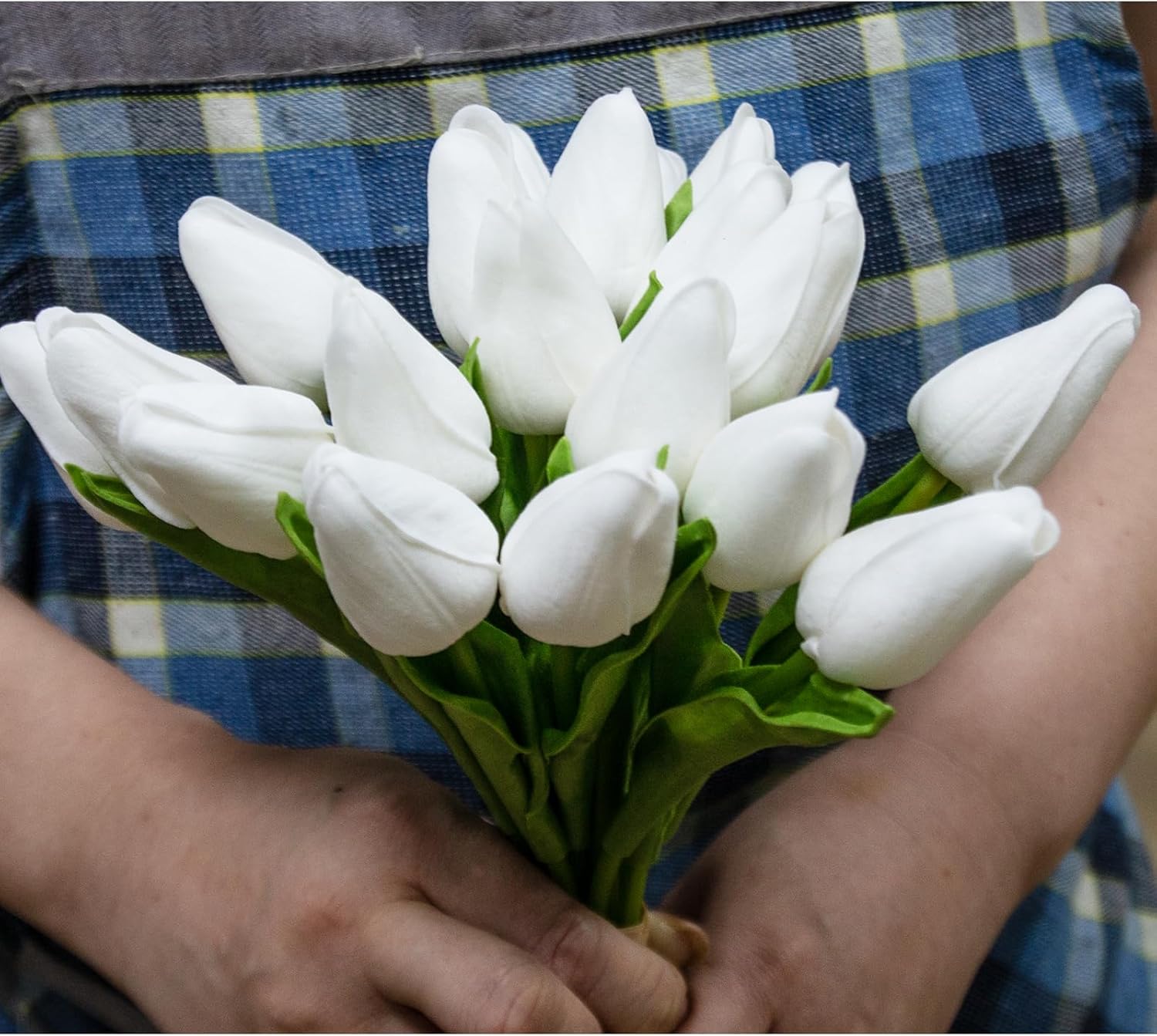 Buart Artificial Tulip in Bulk for Home Kitchen Wedding Bridal Bouquet,Fake White Flowers for Valentine's Day Mother's Day Easter Table Centerpieces Decorations(Mini Size,Real-Touch,12pcs)