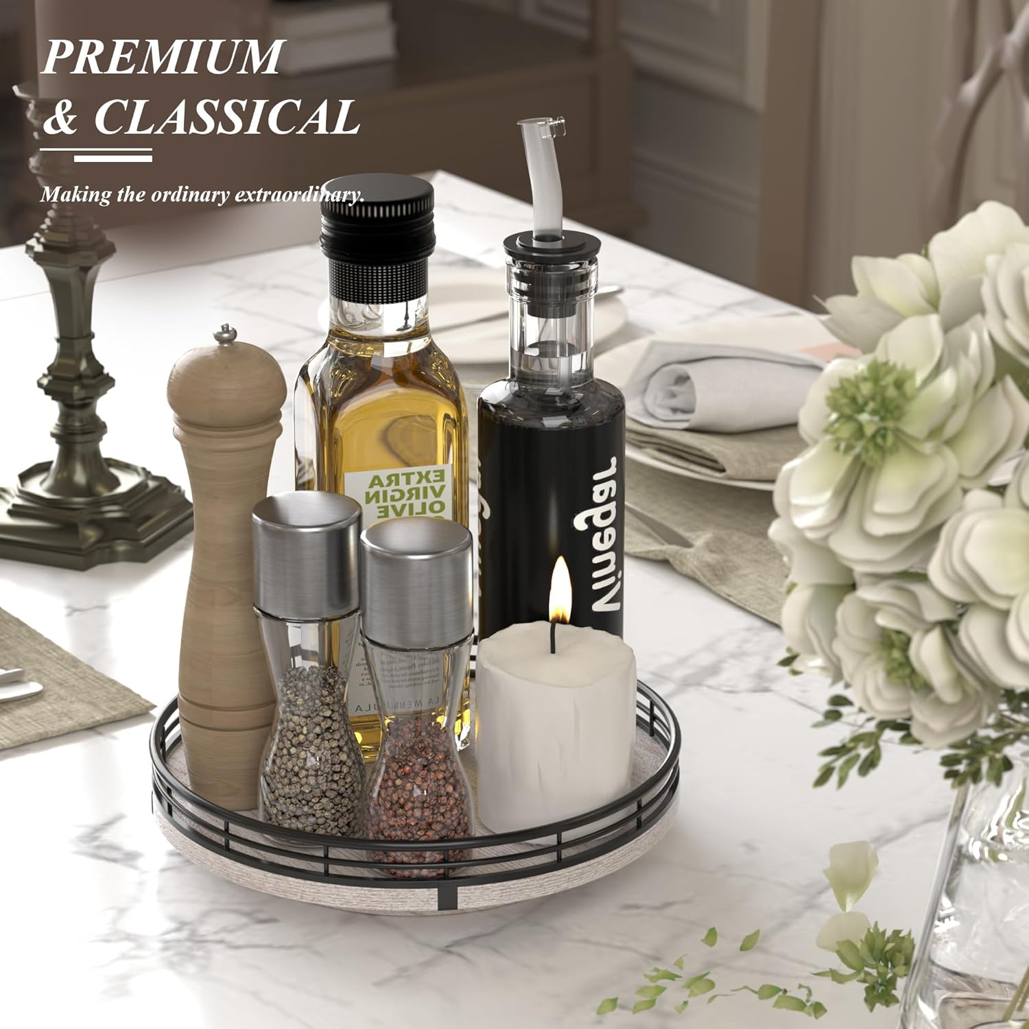 - ππππ πππ πππ ππ: Perfect for a wedding, Birthday, housewarming gift, Mother's Day gift, or centerpiece for any occasions. Tastefully packaged, our turntable organizer makes a thoughtful and practical gift for someone who loves home organization. No assembly was required.
