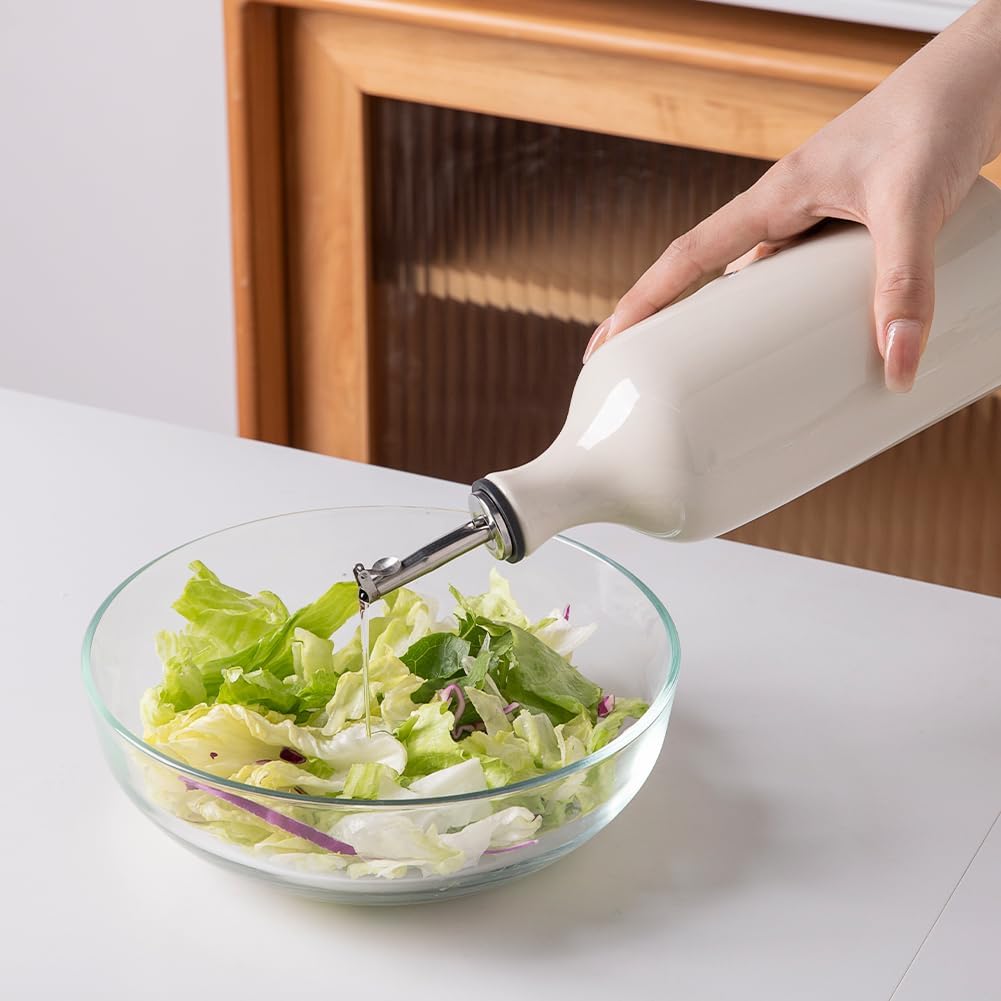 - Modern Relief Design -The bottle body is embossed with olive leaves, which looks elegant and delicate.Precision dumping, bottle body design has a unique spout, can perfectly pour out the oil and vinegar will not leak, the correct control of the use of oil.