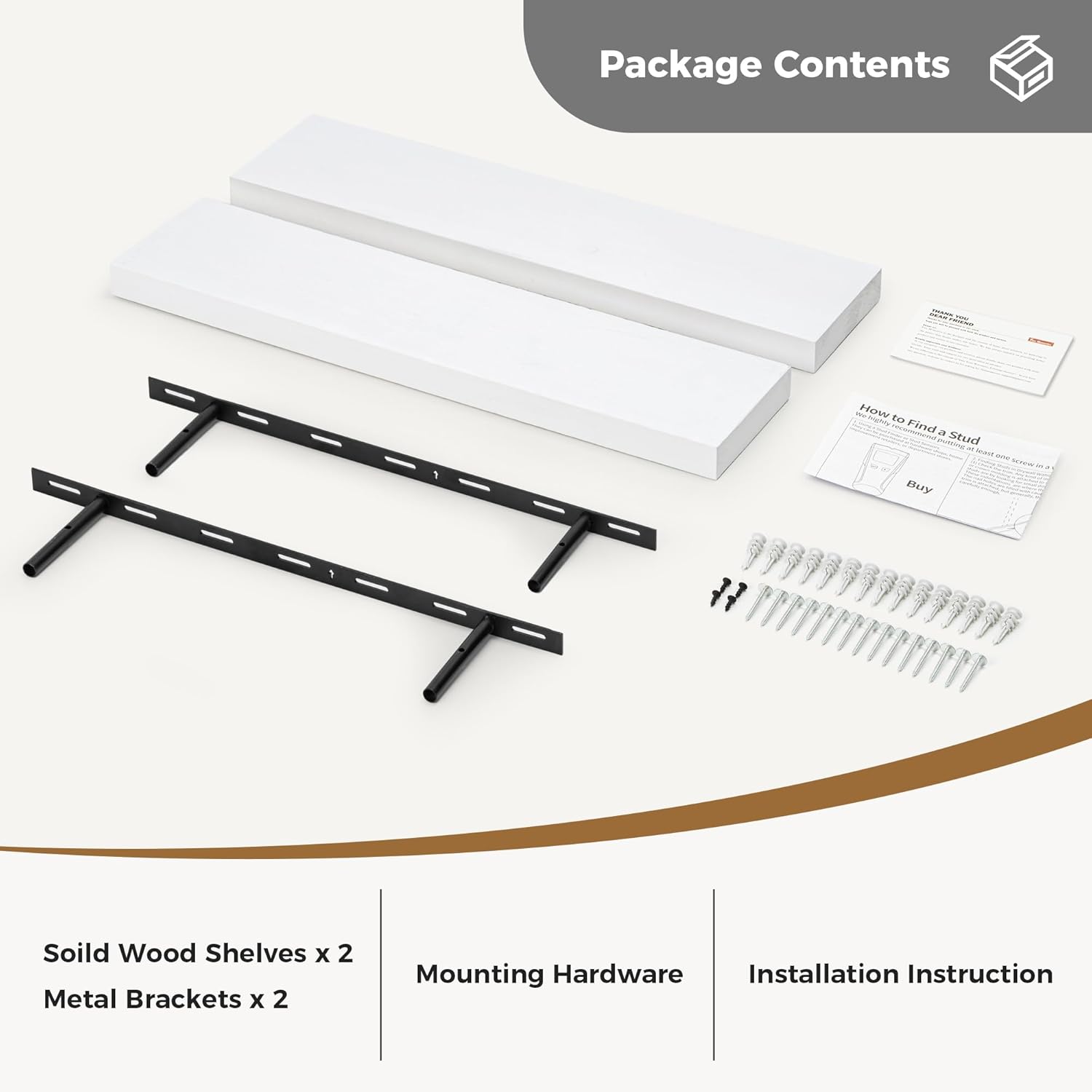 • Excellent Storage & Décor - Each board measures 24"L x 5.7"W x 1.3"H, hold up to 50 lb. This floating shelf taking up zero square feet, reduces clutter and highlights décor in compact spaces. It can help make full use of the empty wall, which is much more space-saving and makes your room look larger and tidier.