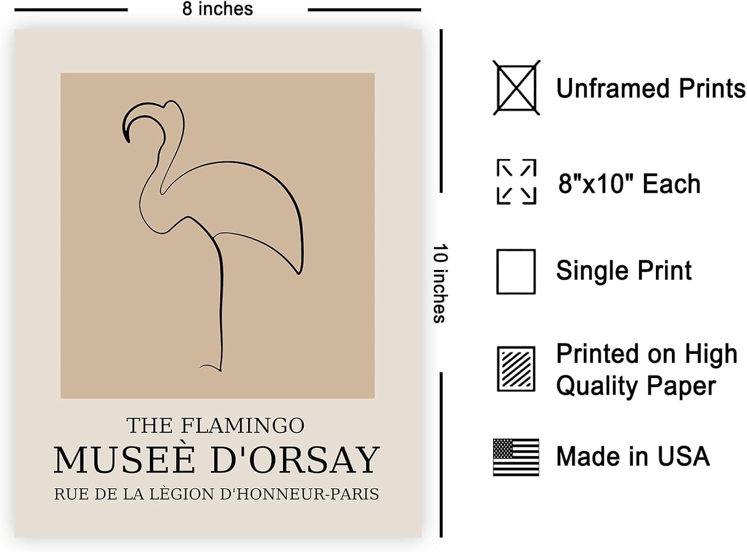 Poster Master Vintage Flamingo Print - Retro Bird Poster - Line Drawing Art - Sketch Wall Design - Gift for Boys, Girls & Animal Lover - Decor for Kids Room or Nursery - 8x10 UNFRAMED Wall Art