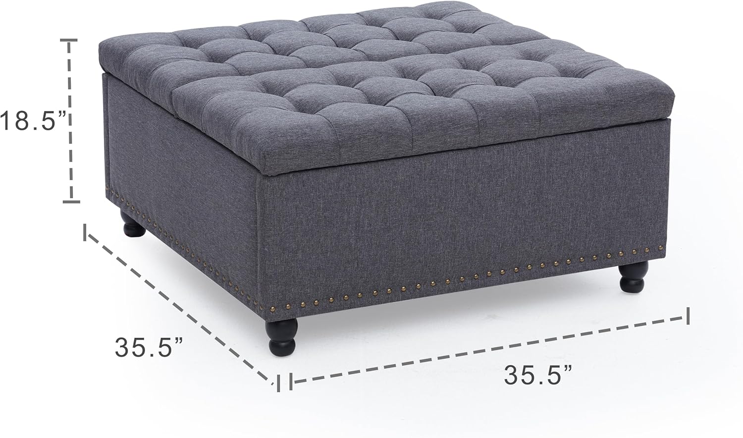Tbfit Large Square Storage Ottoman Bench, Tufted Upholstered Coffee Table Ottoman with Lift Top & Wooden Legs, Oversized Storage Ottomans Toy Box for Living Room (Dark Grey)