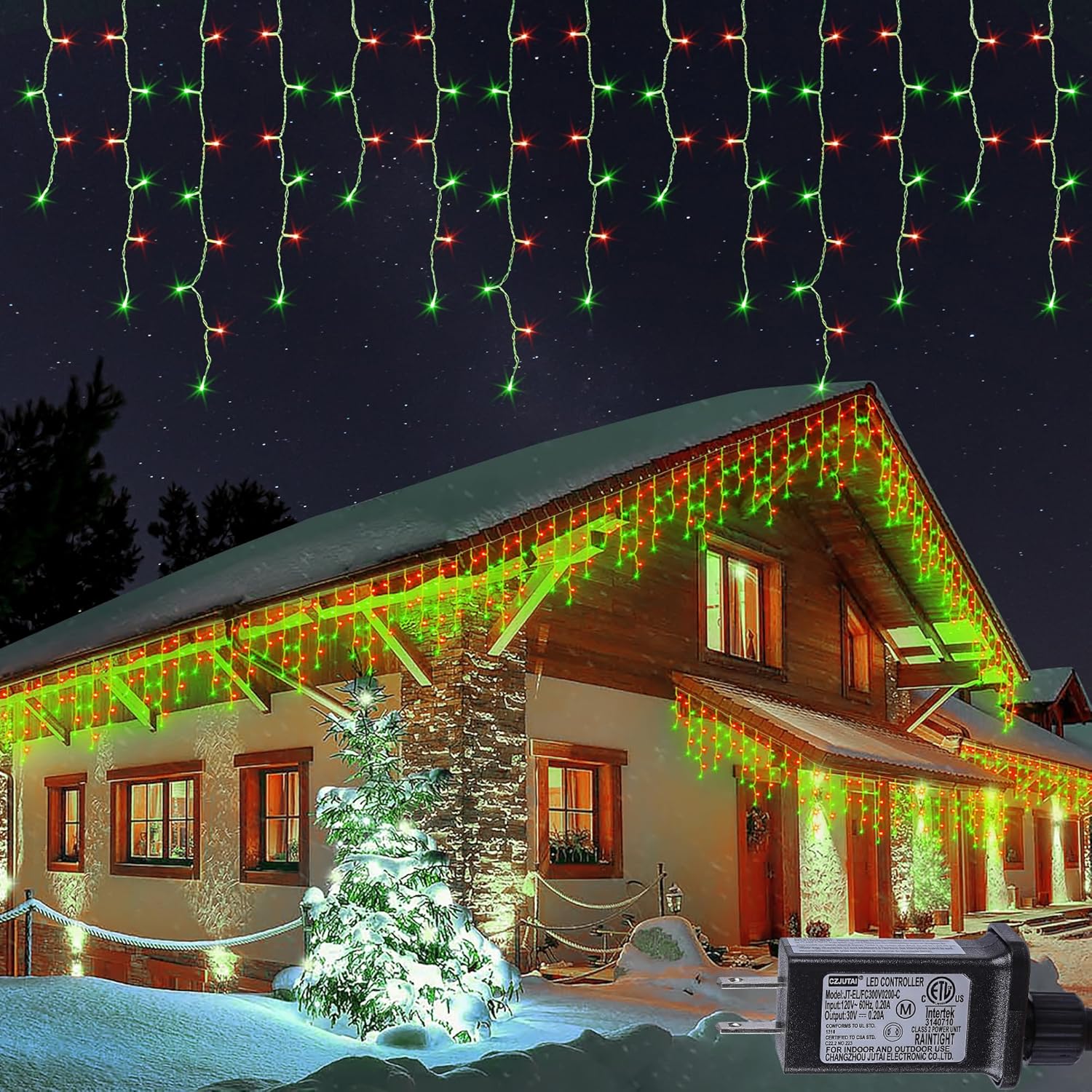 - ⛄【UL Certified & Safe】:These red green icicle lights is IP44 waterproof.Using 29V low voltage certified by UL,more safety and less power consumption,high quality rest assured use.It is the best choice for your outside christmas lights.Warm tips: Please kindly protect these string lights from immersing in water and keep the plug dry.