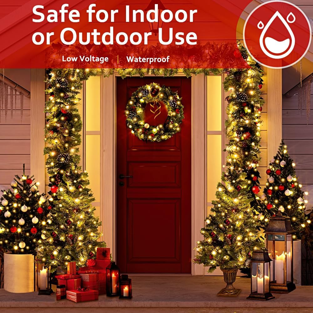 - 29V Low Voltage and Easy to Pacakge : Designed as a single, easy to use strand. Perfect for effortlessly decorating your tree, 100ft warm christmas lights provide a soft, warm glow while minimizing energy consumption. With quick setup and easy wrapping around branches,when the season ends, they are simple to package and store. Ideal for those seeking both safety and convenience