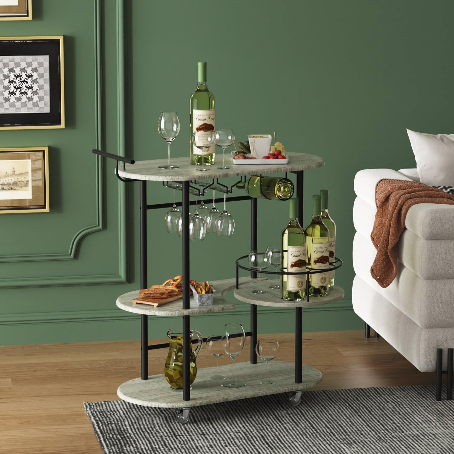Light Gray Bar Carts with 4-Tier Storage Shelves, Mobile Bar Serving Cart with Wine Rack and Glass Holder, for The Home, Kitchen, Living Room, Dining Room