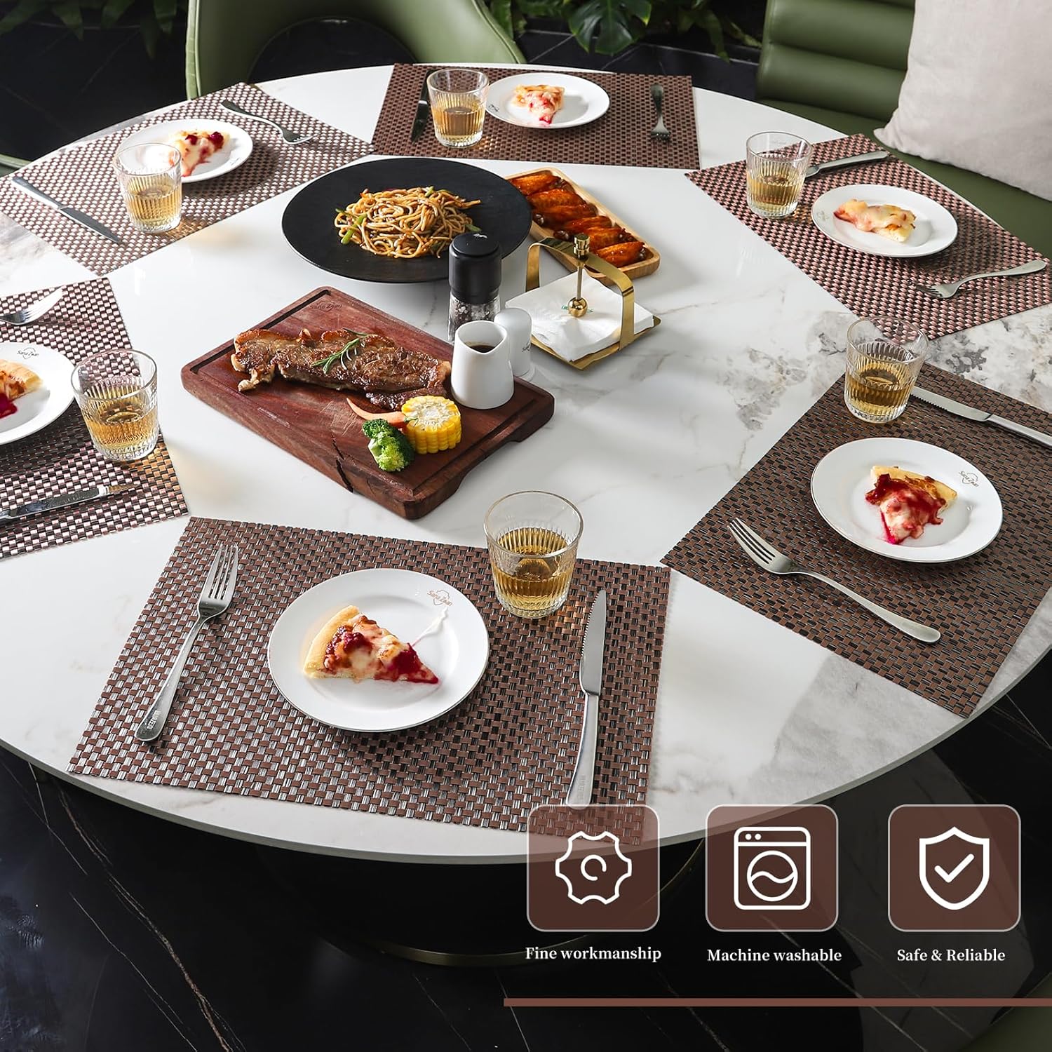 - 【Eco-Friendly Material】: EDanle placemats are made of high quality natural PVC/vinyl and polyester with long-lasting heat insulation and stain resistant features to provide protection for your table and prevent food residues and sauces from corroding the table and doilies for tables while adding fancy ambiance to your table