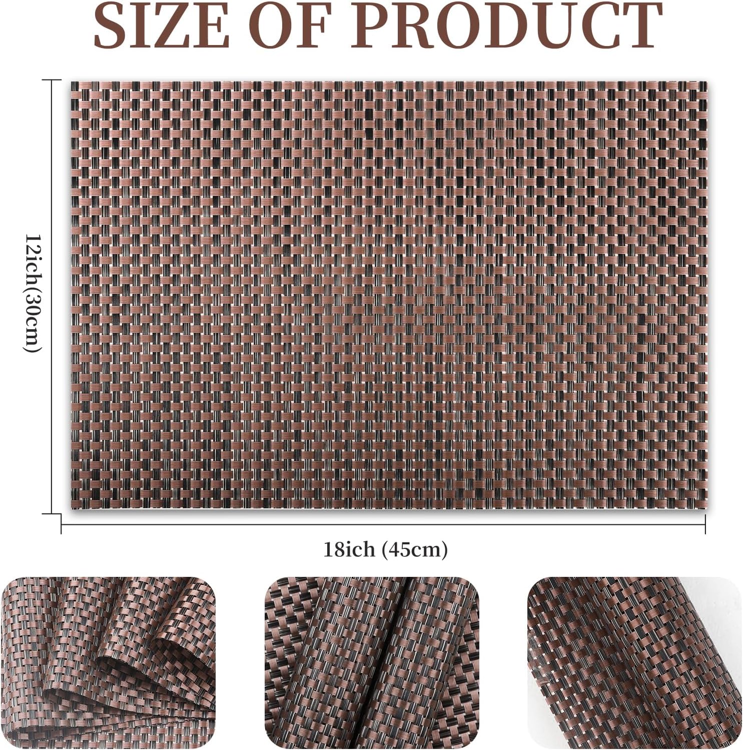 - 【Home Practical Decor】: Various types of modern textured and color placemats are available, 18x12 inch extra large rectangular perfect size set of 6 pieces placemats, is a decorative accessories of the table setting, both indoor and outdoor will be perfect for your dish or dinner plate size. These placemats can be rolled up through long storage and put away, will remain stay flat when spread out, very easy to store and carry around