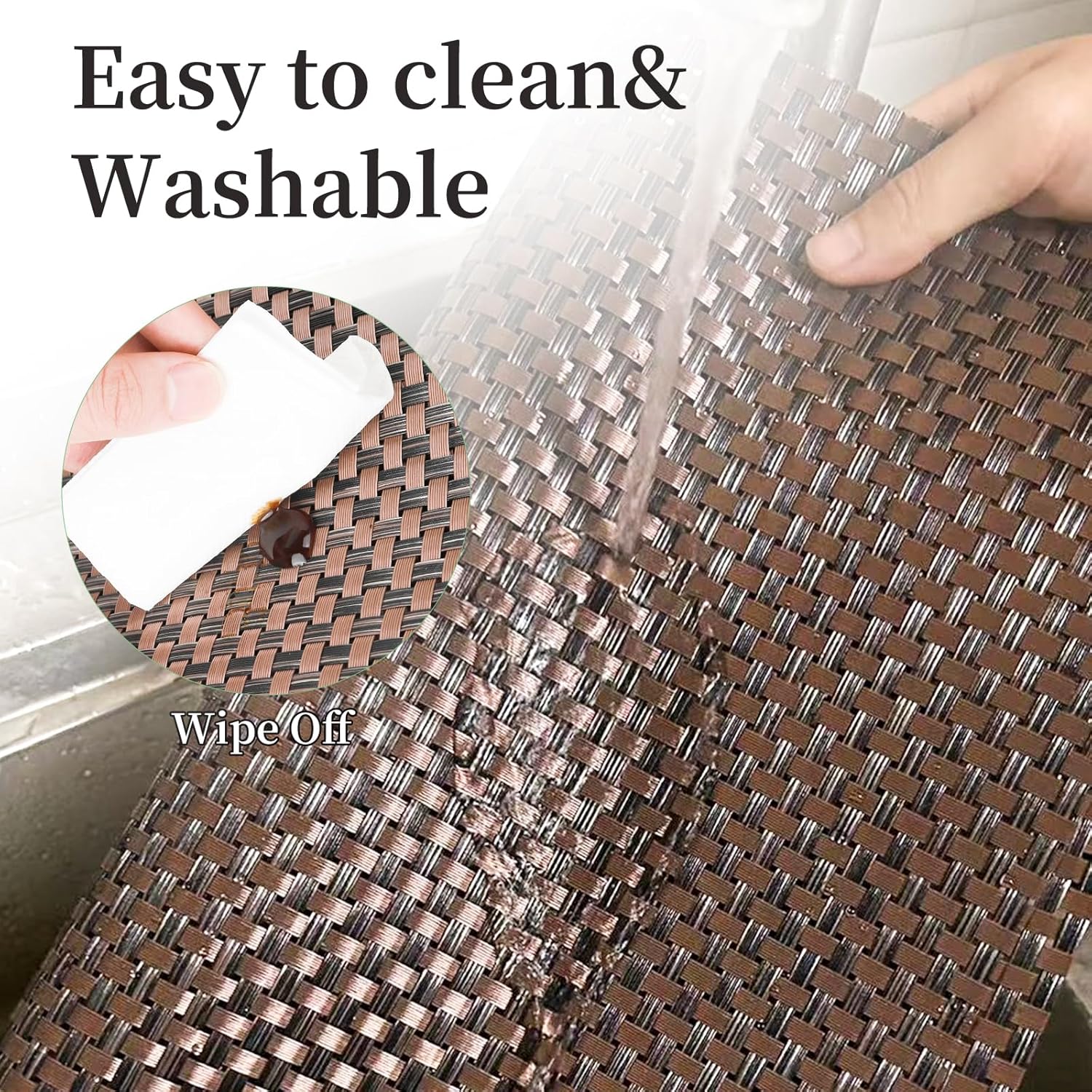 - 【Product Care Maintenance】: You can rinse with the brush in water, material does not absorb water, sponge with soap, detergent scrubbing washable, quick dry and wipeable waterproof, easy to clean. Warming tips: the maximum heating limit of our placemats is 221℉(105℃), please do not bake the placemats in microwave oven or iron them, do not wash with machine, it will cause irreversible hard damage to the placemats