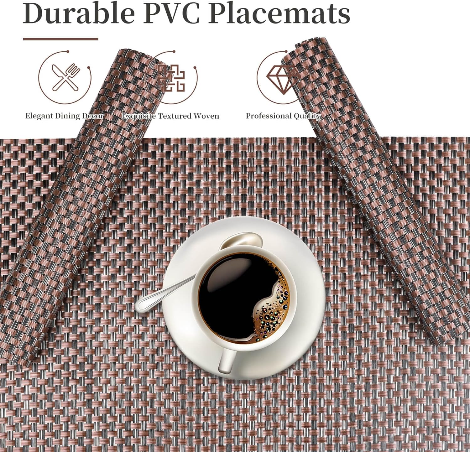 Vinyl Plastic Placemats Set of 6 Washable Heat Resistant Non-Slip Elegant Indoor Outdoor Kitchen Dining PVC Woven Table Place Mats (Black Red Weaving)