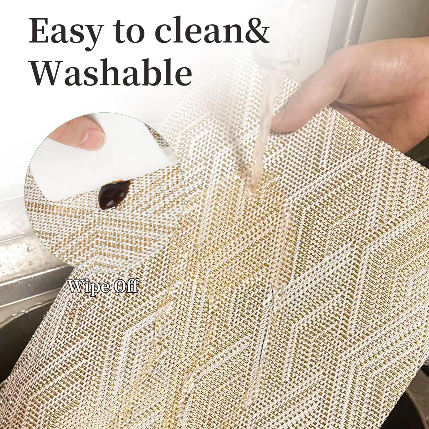 - 【Product Care Maintenance】: You can rinse with the brush in water, material does not absorb water, sponge with soap, detergent scrubbing washable, quick dry and wipeable waterproof, easy to clean. Warming tips: the maximum heating limit of our placemats is 221℉(105℃), please do not bake the placemats in microwave oven or iron them, do not wash with machine, it will cause irreversible hard damage to the placemats