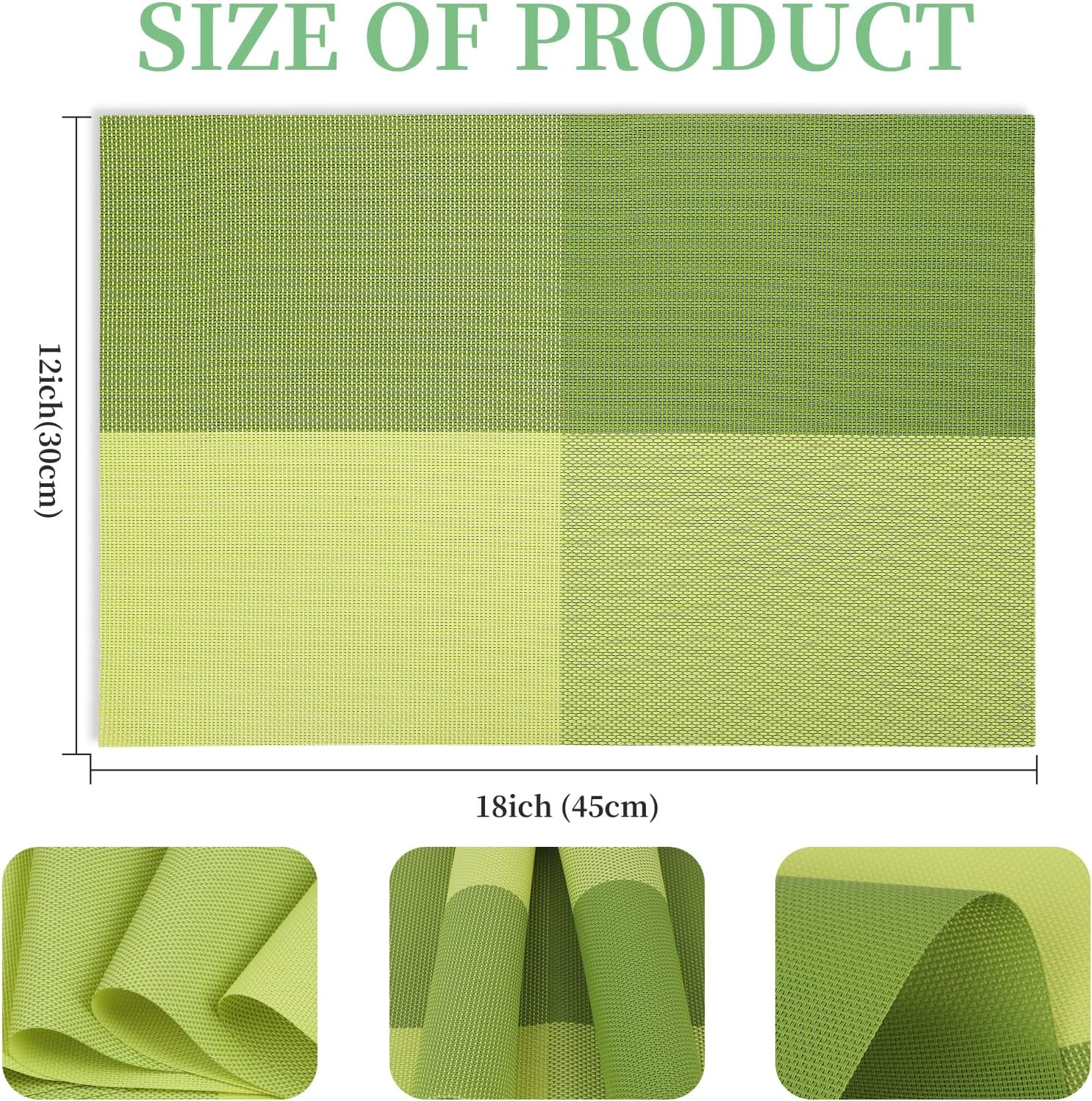 Vinyl Plastic Placemats Set of 6 Washable Heat Resistant Non-Slip Elegant Indoor Outdoor Kitchen Dining PVC Woven Table Place Mats (Matcha Green Lattice Block)