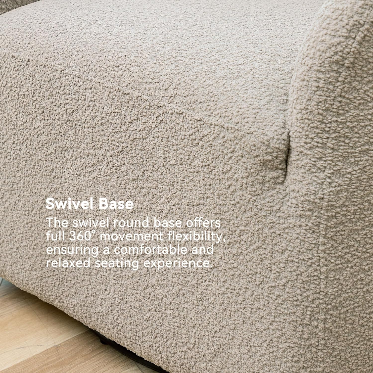 - Premium Boucle Fabric: The boucle upholstered swivel barrel chair is covered in a premium boucle fabric that not only looks great but also feels cozy and soft to the touch. The texture of the boucle fabric adds an extra layer of comfort to the chair, making it a great option for anyone looking for a comfortable seating option.
