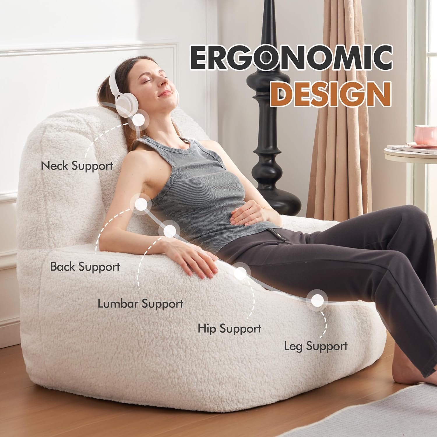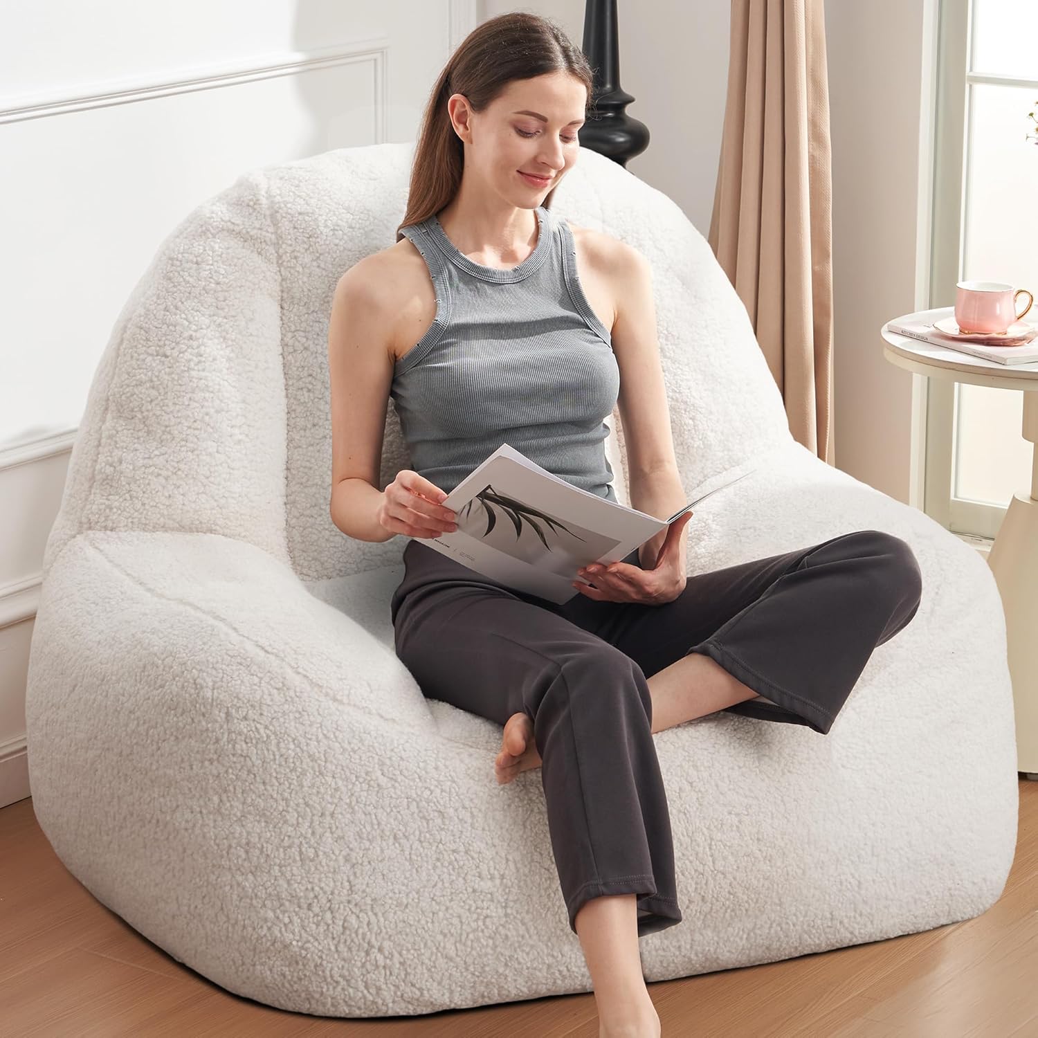 Homguava Bean Bag Chairs for Adults,Giant Beanbag Couch Adult Bean Bag Chair with Filler Included,Modern Lazy Sofa Comfy Chair for Living Room(White)