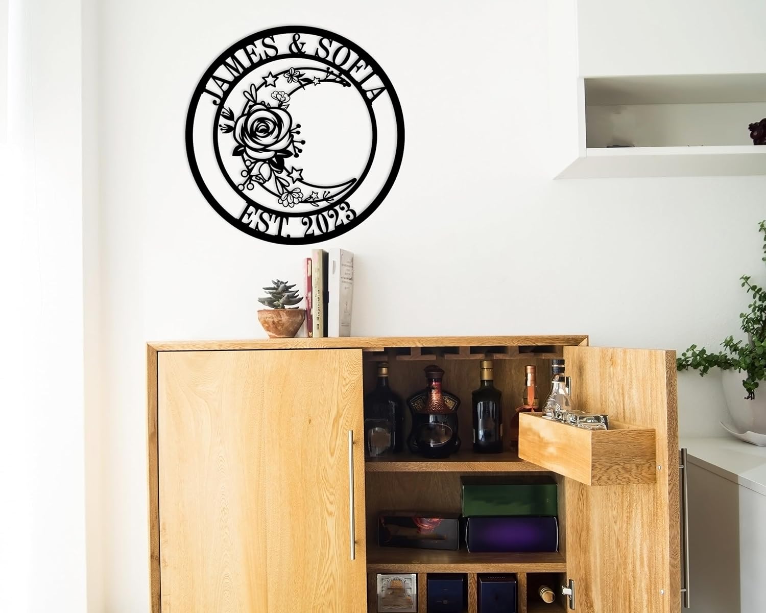 - Celestial Elegance: Enhance your space with a stunning moon metal sign, featuring captivating floral art decor and mesmerizing moon and star phase designs.