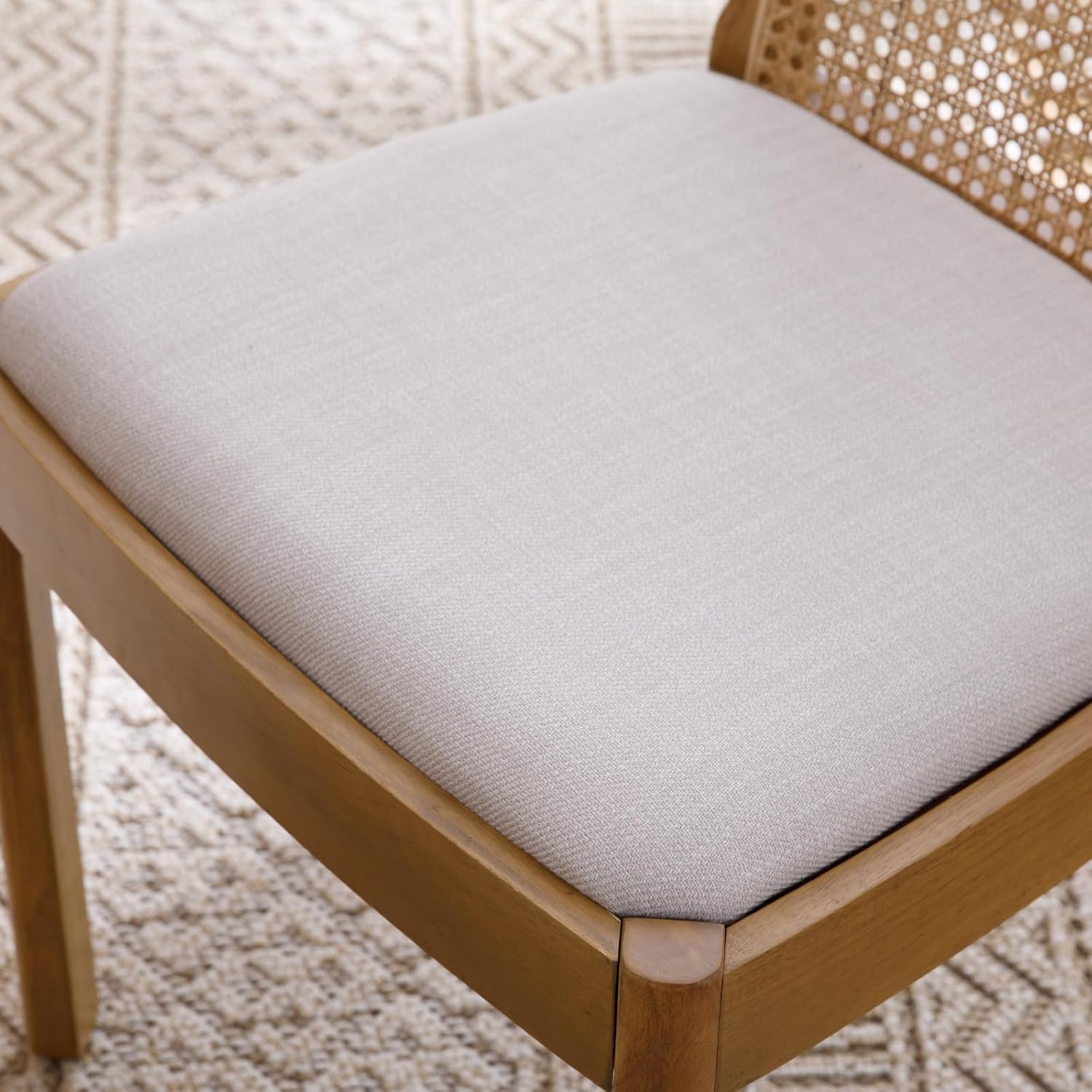 Mid Century Dining Chairs Set of 6, Accent Rattan Linen Fabric Side Chairs Kitchen Chair with Solid Wooden Legs for Living Room Dining Room, Beige
