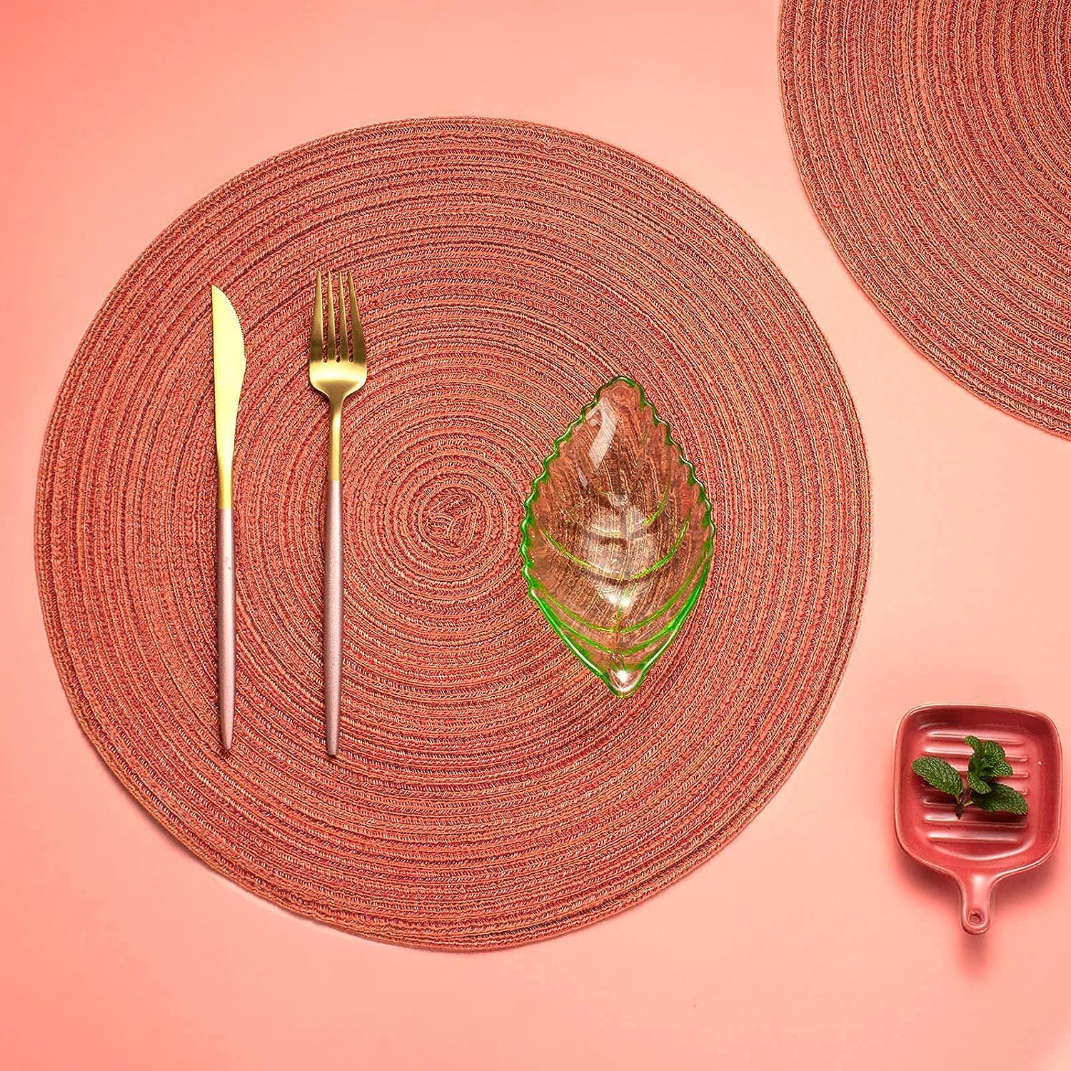 AHHFSMEI Round Braided Placemats Set of 8 Round Table Mats for Dining Tables Natural Woven Heat Resistant Place mats 15 Inch(Orange,8)