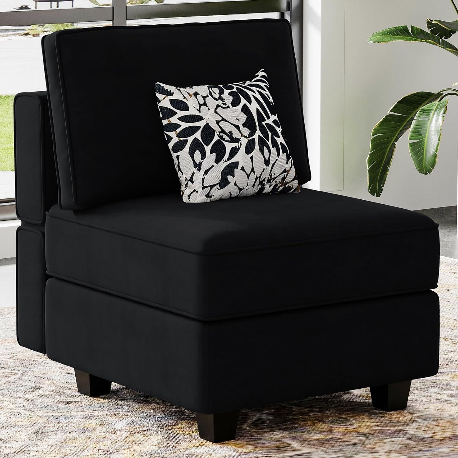 Belffin Modular Sofa Middle Module with Storage Accent Armless Chair for Modular Sectional Sofa Couch Velvet Black