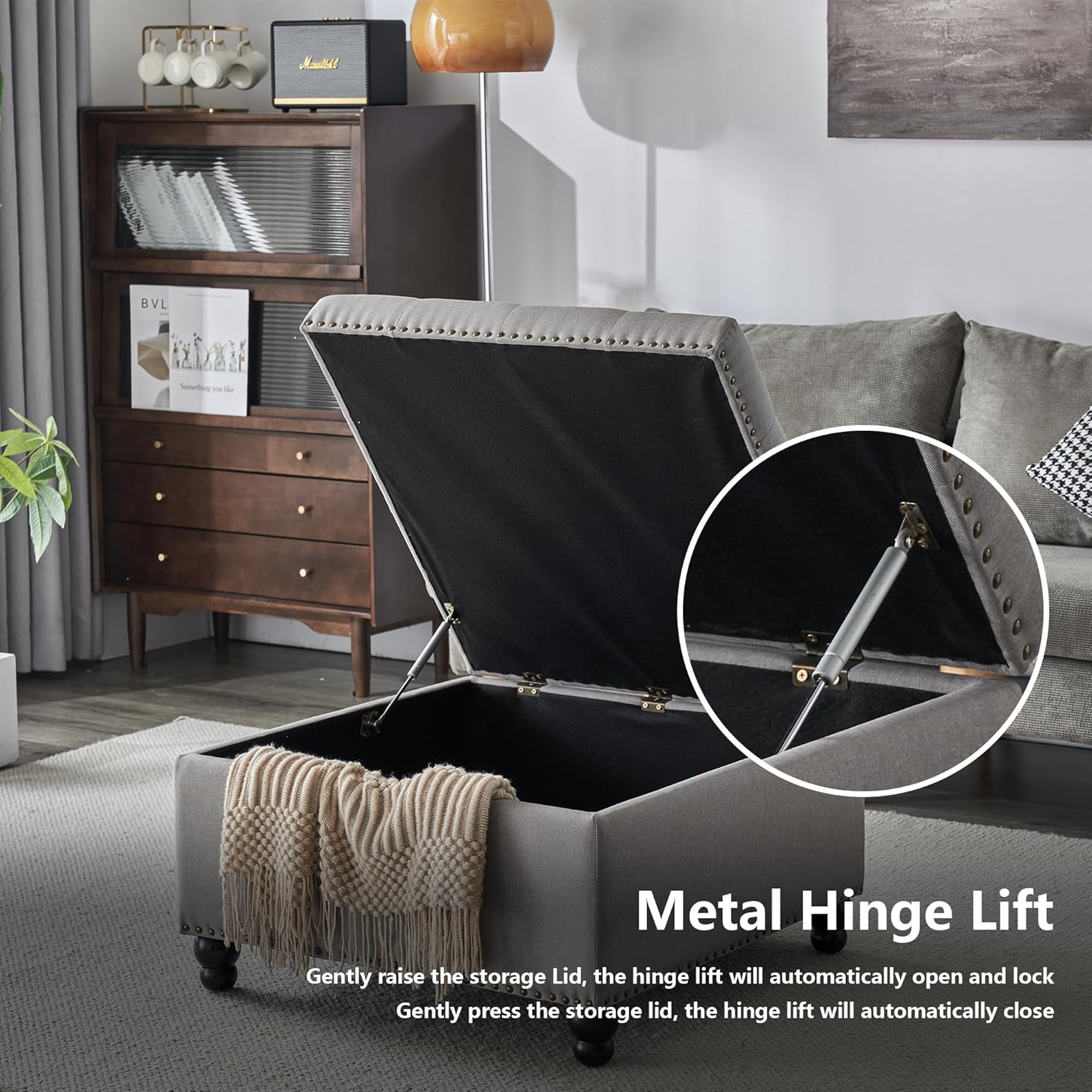 - 【Built-in Storage Compartment】 Our oversized coffe table ottoman features an extra room to store your things,the ottoman's top opens up to reveal a spacious compartment perfect for storing home essentials like throw pillows and blankets.